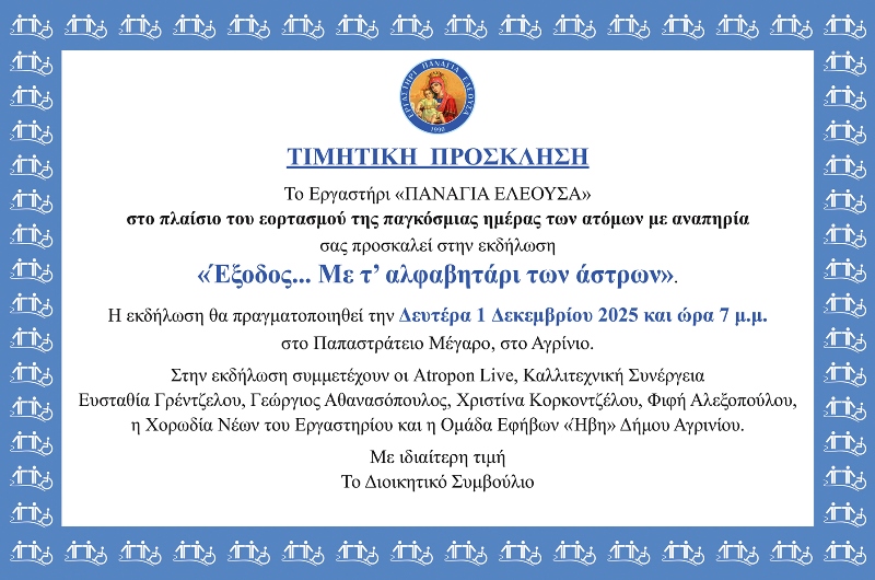 Εκδήλωση από το Εργαστήρι “ΠΑΝΑΓΙΑ ΕΛΕΟΥΣΑ” στο Παπαστράτειο Μέγαρο