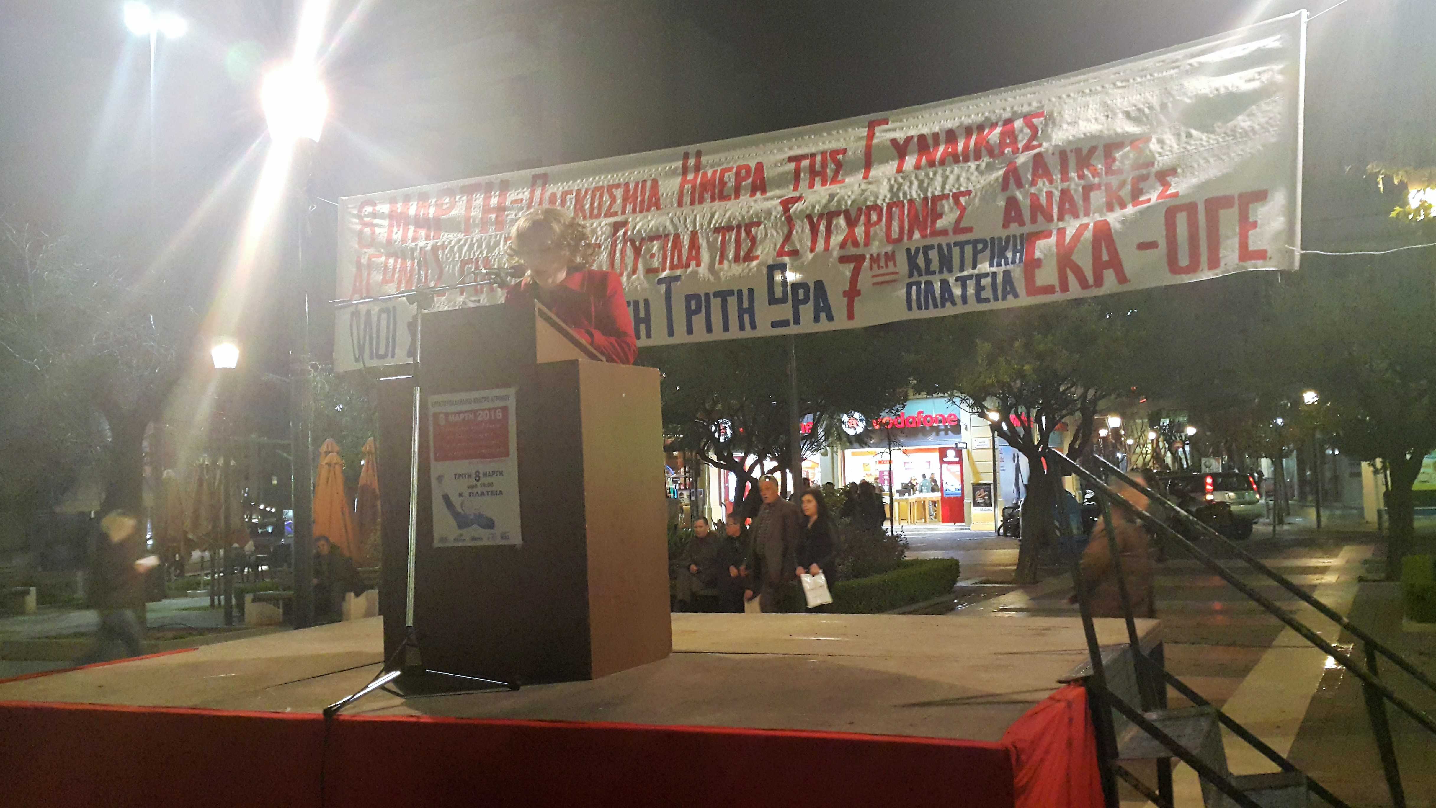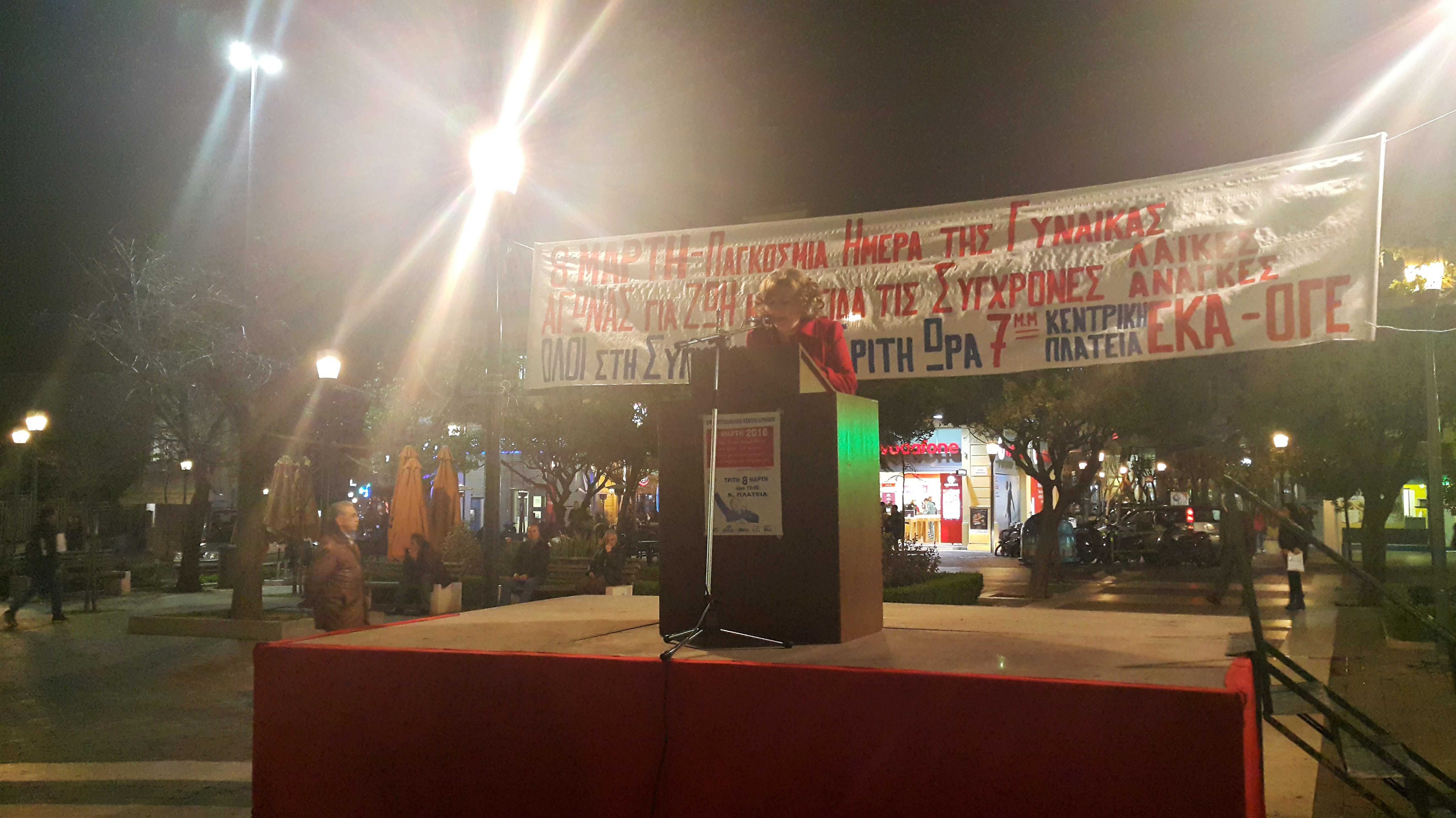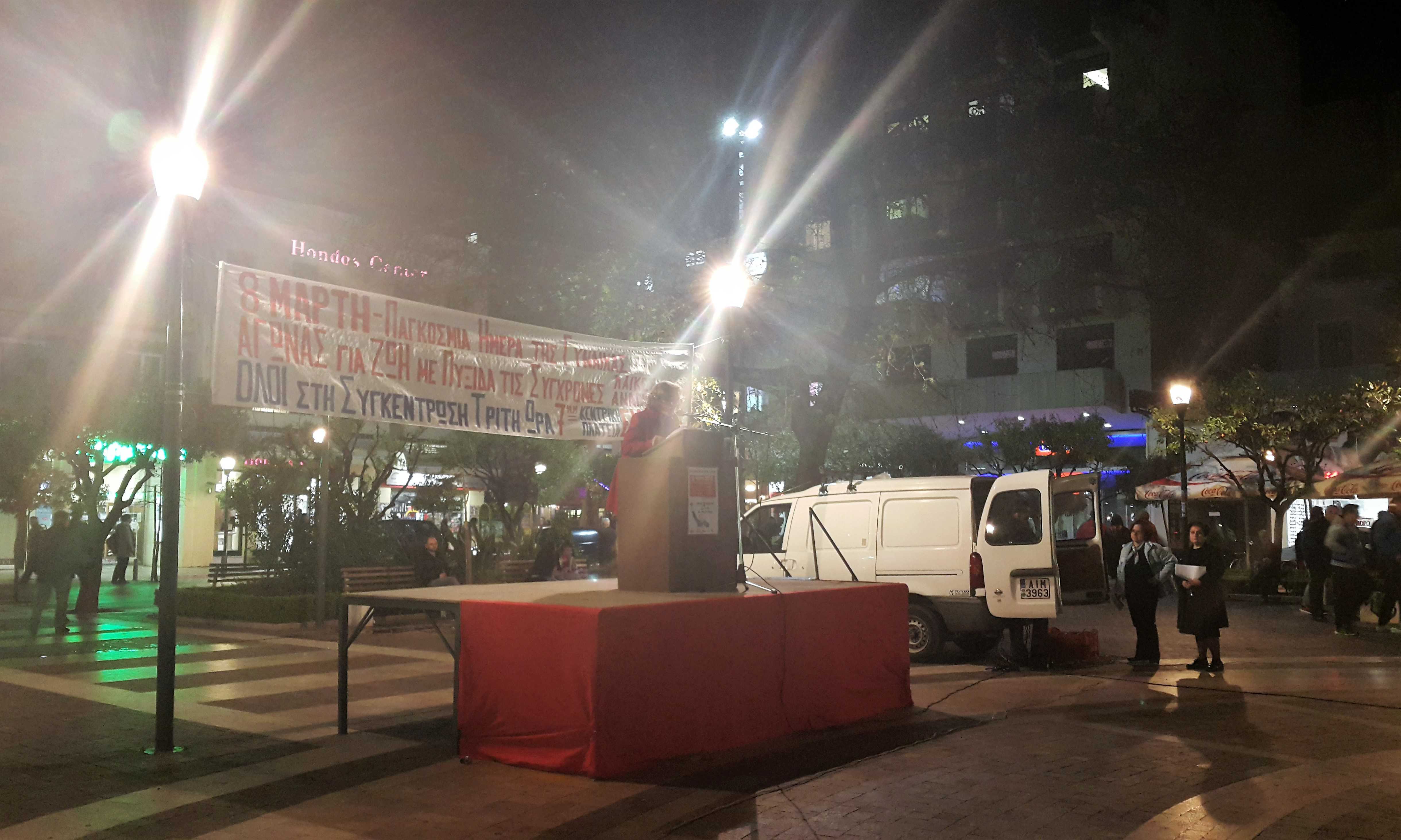 Εκδήλωση για την Παγκόσμια Ημέρα της Γυναίκας πραγματοποίησε χθες το απόγευμα το Εργατοϋπαλληλικό Κέντρο Αγρινίου σε συνεργασία με την Ομοσπονδία Γυναικών Ελλάδας στην πλατεία Δημοκρατίας στο Αγρίνιο.