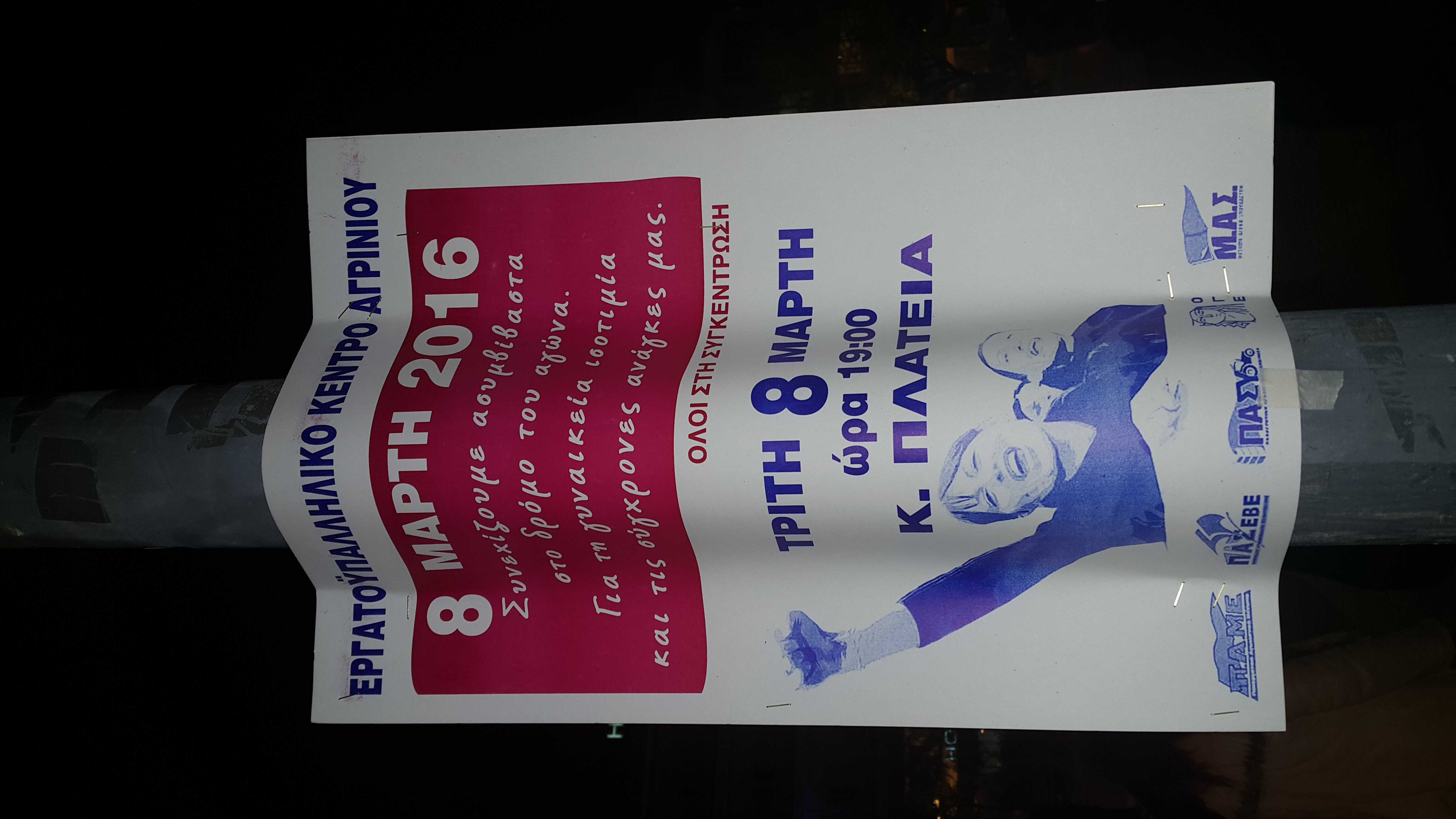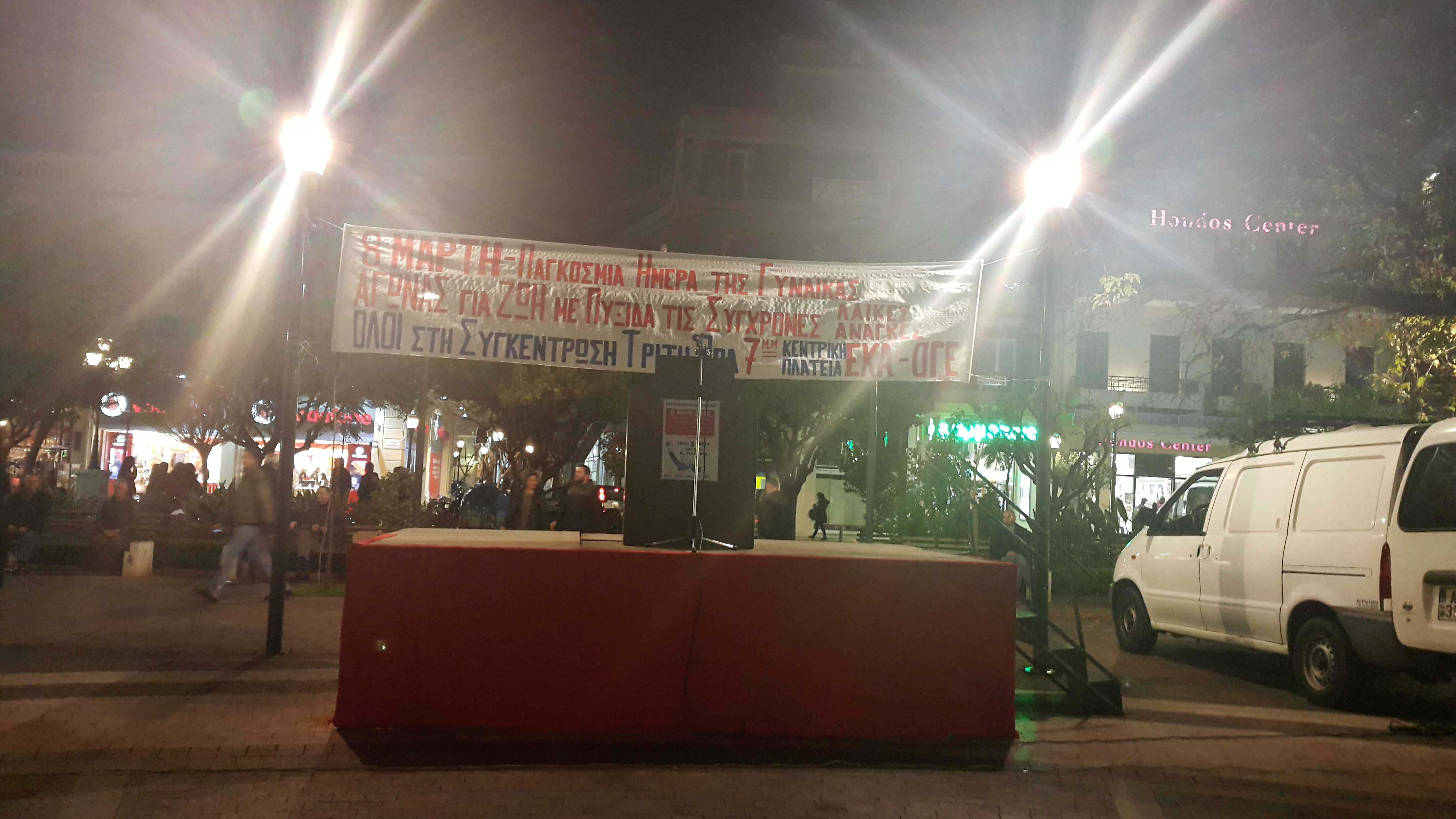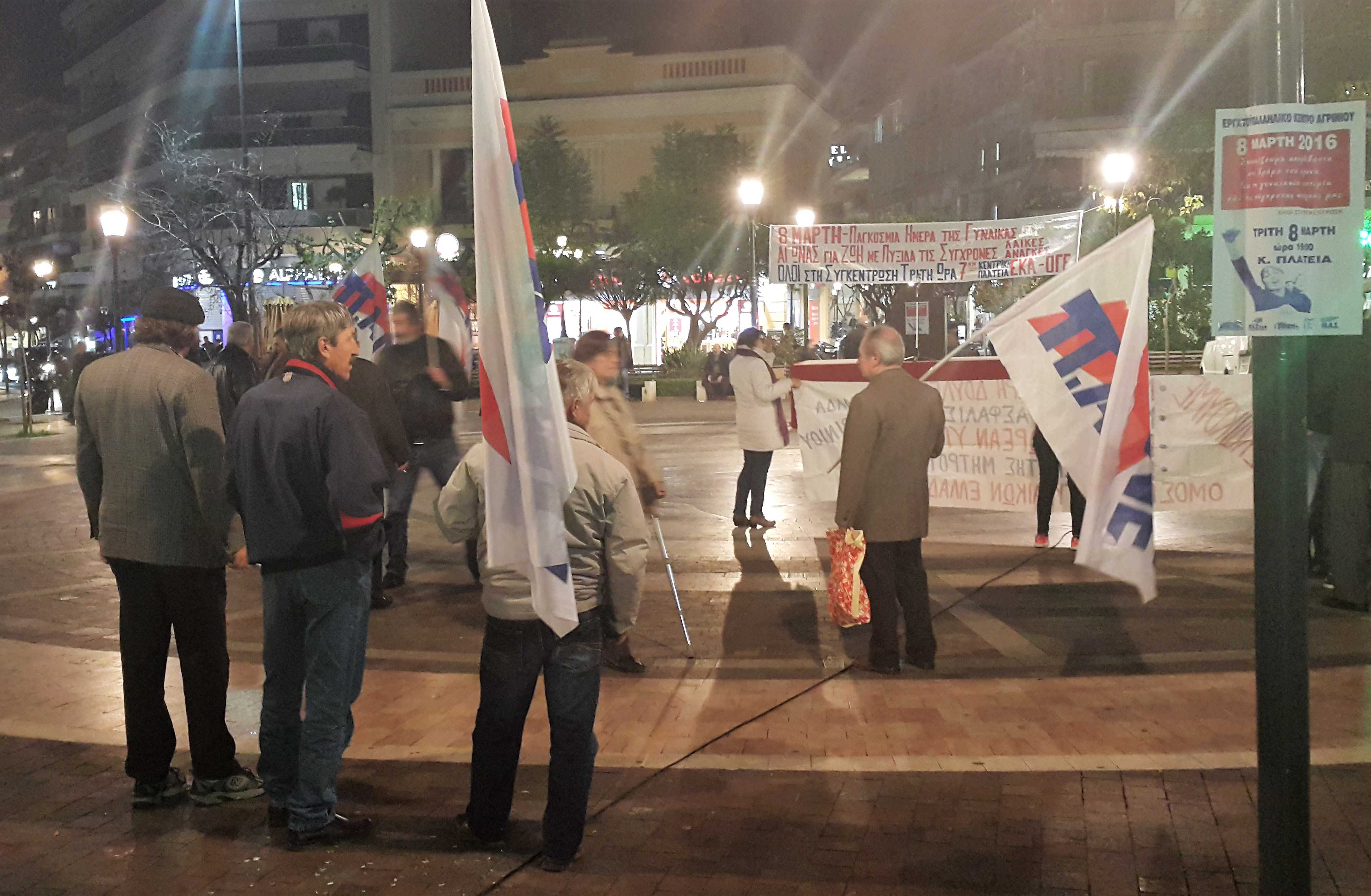 Εκδήλωση για την Παγκόσμια Ημέρα της Γυναίκας πραγματοποίησε χθες το απόγευμα το Εργατοϋπαλληλικό Κέντρο Αγρινίου σε συνεργασία με την Ομοσπονδία Γυναικών Ελλάδας στην πλατεία Δημοκρατίας στο Αγρίνιο.
