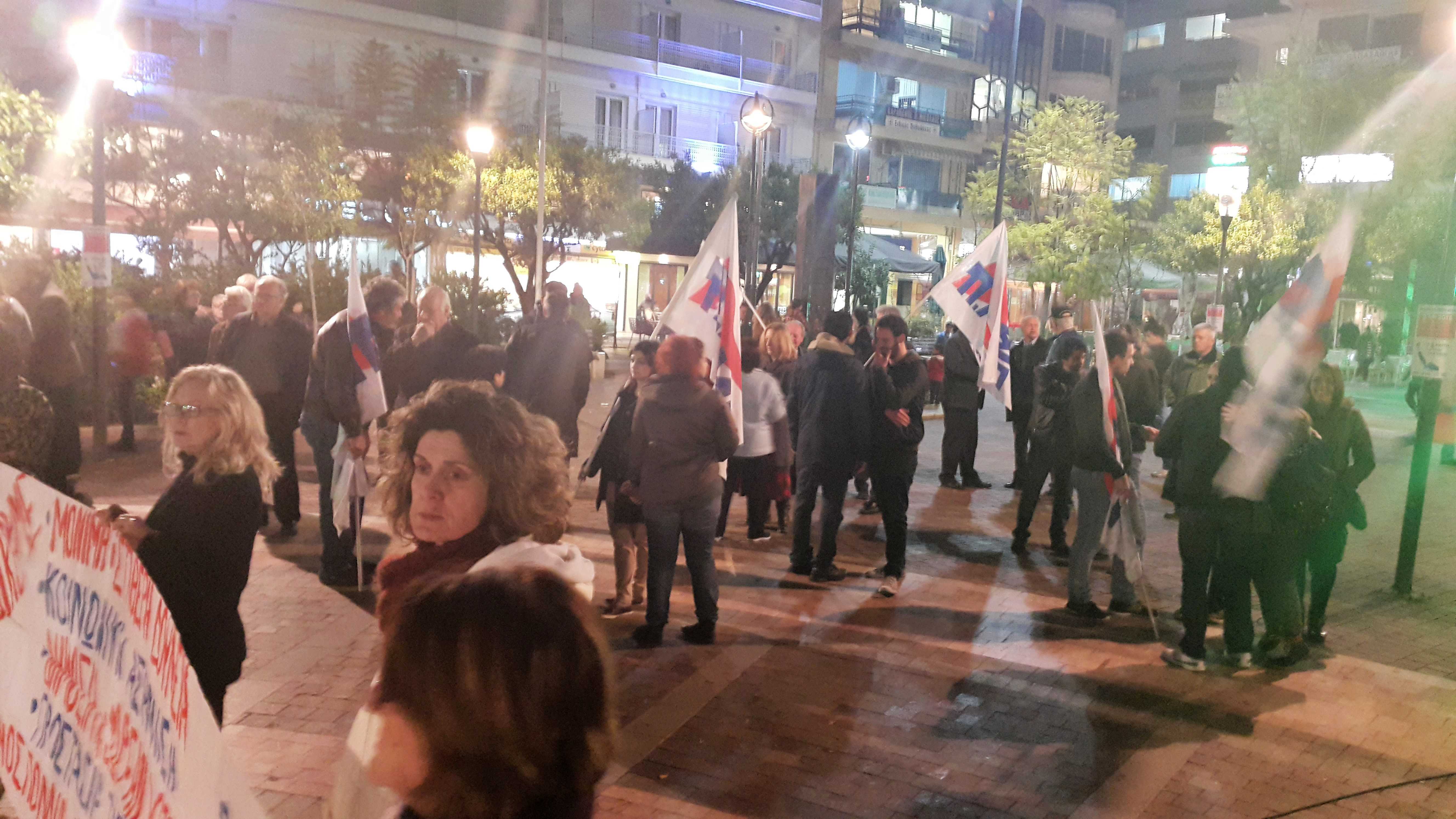 Ικανοποιητική ήταν ο συμμετοχή του κόσμου που βρέθηκε στην κεντρική πλατεία προκειμένου να παρακολουθήσει τη συγκέντρωση, ανάμεσά τους και μέλη του ΠΑΜΕ κρατώντας πανό και σημαίες.