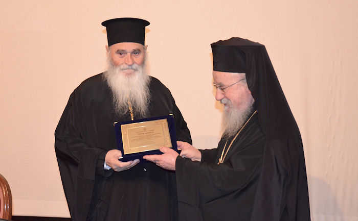 Ο Σεβασμιώτατος Μητροπολίτης Αιτωλίας και Ακαρνανίας κ. Κοσμάς, στη συνέχεια, απένειμε τιμητική πλακέτα στον π. Γερβάσιο Ραπτόπουλο εις ένδειξη αναγνωρίσεως του ποιμαντικού και φιλανθρωπικού του έργου.