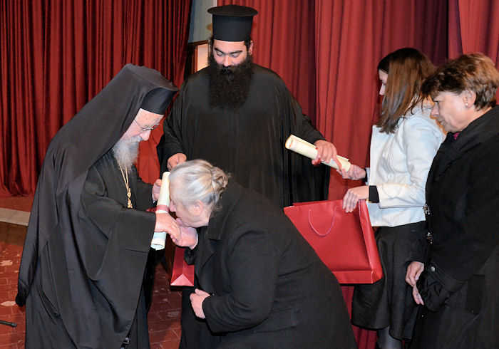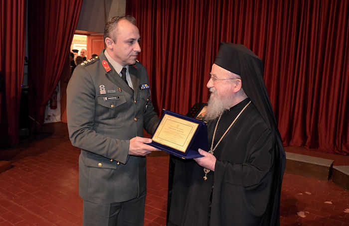 Τιμητική πλακέτα απένειμε ο Σεβασμιώτατος στον Διοικητή του 2/39 Συντάγματος Ευζώνων για την βοήθεια του Στρατού στη λειτουργία των Συσσιτίων, ενώ απένειμε πάπυρο με τον «Έπαινον» της τοπικῆς Εκκλησίας στις κυρίες που κουράζονται ιδιαιτέρως διακονώντας καθημερινά στα Συσσίτια.