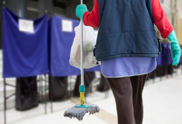 Δεν είναι δυνατόν εργαζόμενες και εργαζόμενοι των 100-500€ να επιβαρυνθούν αμισθί και αφιλοκερδώς με τον καθαρισμό των σχολείων – εκλογικών τμημάτων, τα οποία θα υποδεχθούν χιλιάδες ψηφοφόρους, με την ρύπανση των χώρων να είναι πολλαπλάσια μιας καθημερινής λειτουργίας σχολείου (εκλογικό υλικό, σκουπίδια εκλογέων, ρύπανση κοινόχρηστων χώρων, τουαλετών, κλπ).