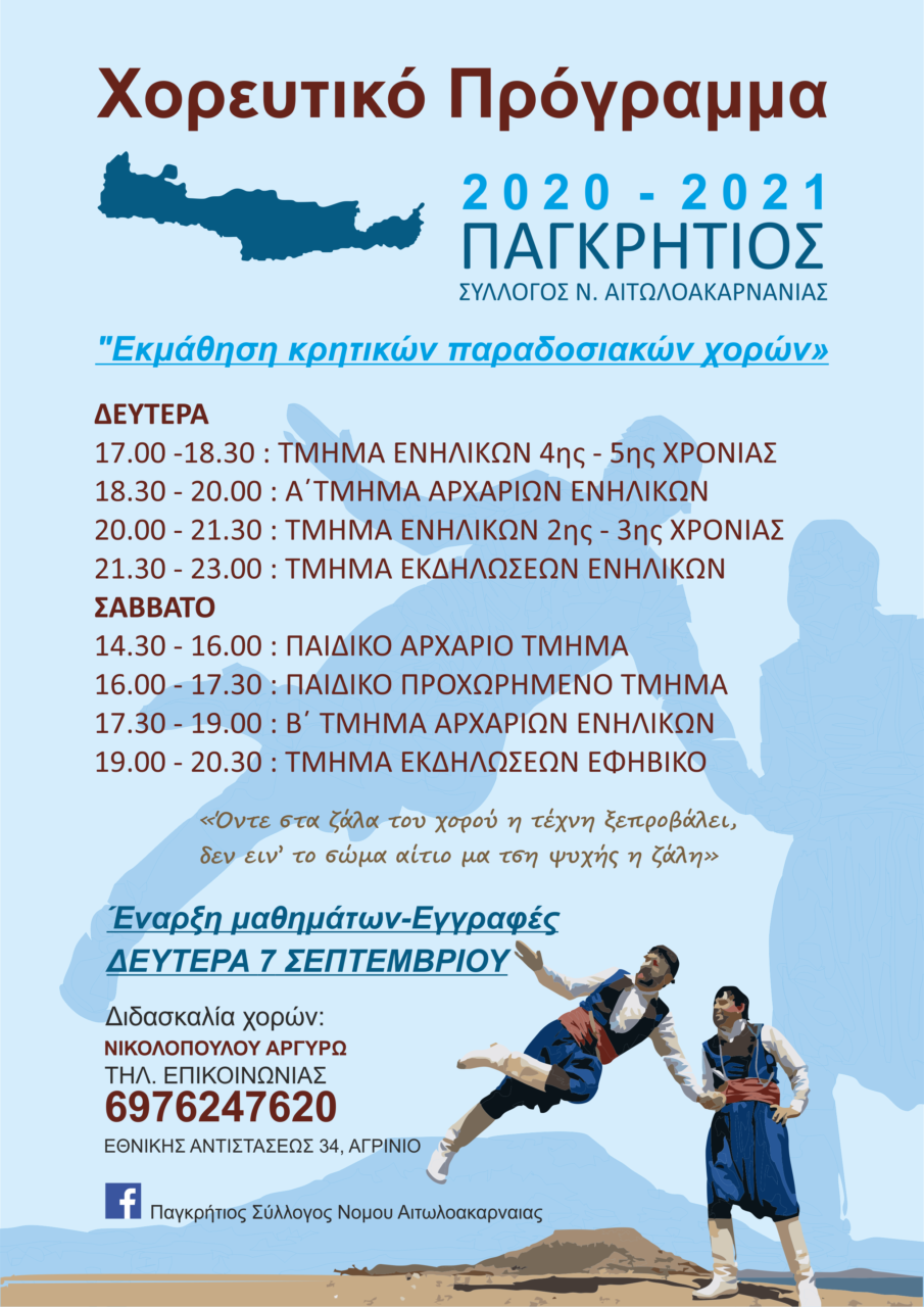 Έναρξη κρητικών χορών στο Αγρινιο με μαντιναδες