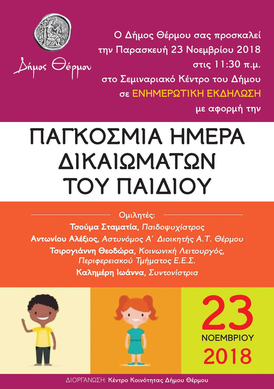 Ενημερωτική εκδήλωση από τον Δήμο Θέρμου για την Παγκόσμια Ημέρα Δικαιωμάτων του Παιδιού