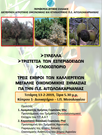 Ενημερωτική συνάντηση απο την ΔΑΟΚ Π.Ε. Αιτωλοακαρνανίας με θέμα : Ξυλέλλα-Τριστέτσα των Εσπεριδοειδών-Γλοιοσπόριο