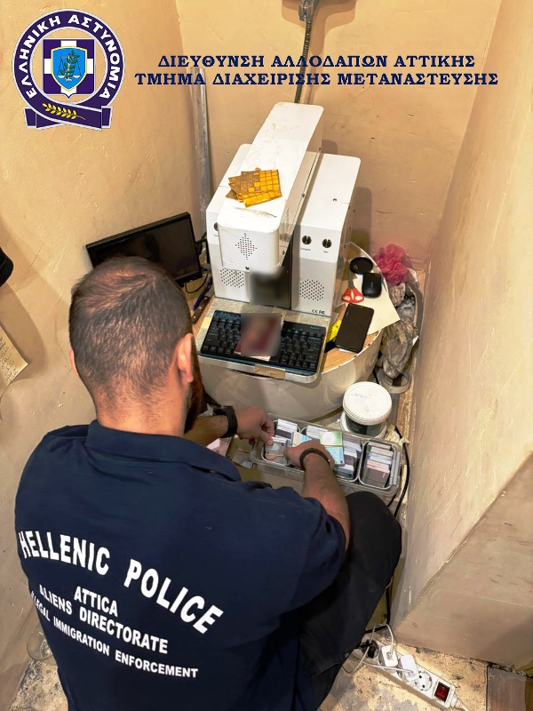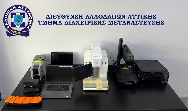 Σε έρευνες, μεταξύ άλλων, βρέθηκαν και κατασχέθηκαν πλήρως εξοπλισμένο εργαστήριο κατάρτισης πλαστών εγγράφων, περισσότερα από -500- πλαστά έγγραφα με τη μορφή πλαστικής κάρτας, καθώς και το χρηματικό ποσό των -885- ευρώ.
