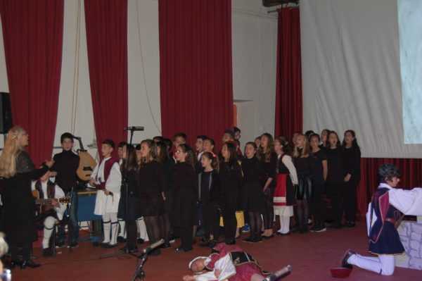 Το πρώτο μέρος περιελάμβανε ομιλία από τον Δρ. Πέτρο Μπερερή με θέμα «Αυτοθυσία», ενώ ακολούθησαν θεατρικά δρώμενα από τους μαθητές των δημοτικών σχολείων 6ο Μεσολογγίου, 2ο Αιτωλικού και Μπούκας Αμφιλοχίας.