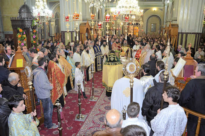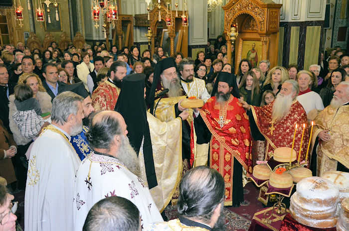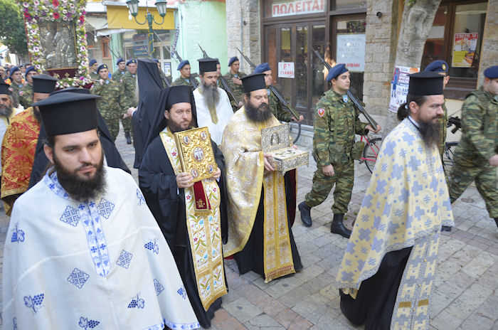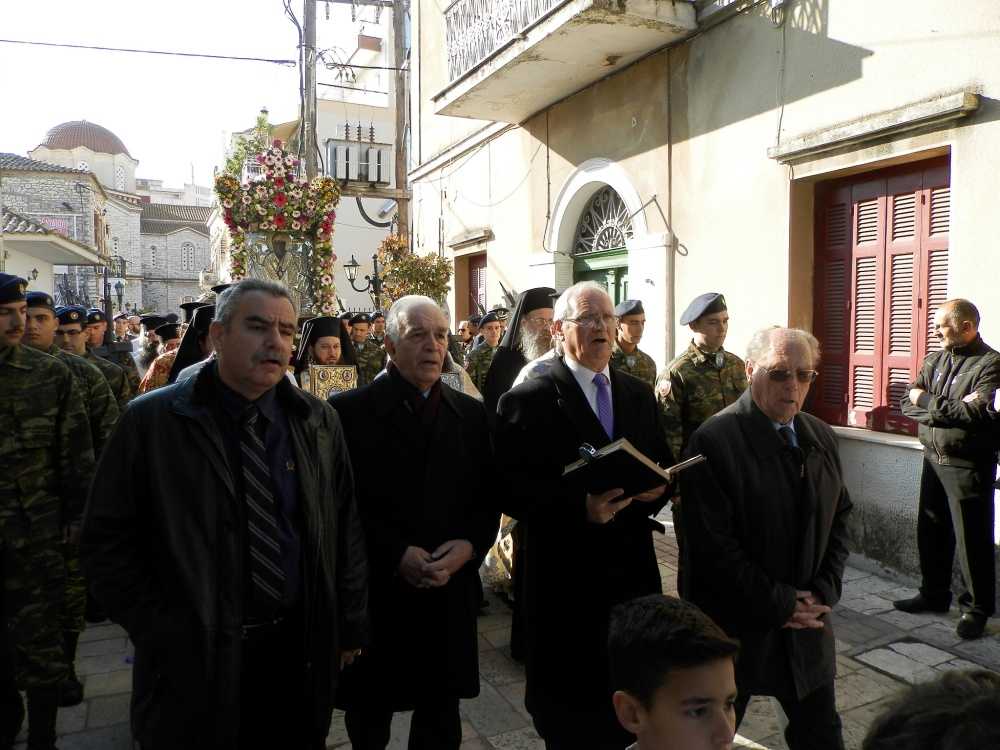 Μετά το πέρας της Θείας Λειτουργίας στον φερώνυμο Μητροπολιτικό Ναό χοροστατούντος του Σεβασμιωτάτου Μητροπολίτη Αιτωλίας και Ακαρνανίας κ. Κοσμά, ακολούθησε η λιτάνευση της Ιερής εικόνας, την οποία συνόδευσαν ο Δήμαρχος Νίκος Καραπάνος, ο Διοικητής του 2/39 Συντάγματος Ευζώνων, ο βουλευτής Δ. Κωνσταντόπουλος, ο Περιφερειάρχης Δυτικής Ελλάδας Α. Κατσιφάρας και η Αντιπεριφερειάρχης Χ. Σταρακά, ο Διευθυντής Αστυνομικής Δ/νσης Αιτωλίας Ν. Κοτρωνιάς, ο Δ/της Πυροσβεστικής Υπηρεσίας Μεσολογγίου Δ. Κοντογιάννης, ο Λιμενάρχης Μεσολογγίου Ι. Σακιριανός, ο Γενικός Γραμματέας Υπουργείου Παιδείας Π. Παπαγεωργίου, η πρόεδρος της Δημοτικής Κοινότητας Μεσολογγίου Α. Καζαντζή, αντιδήμαρχοι και πρόεδροι νομικών προσώπων του Δήμου, μέλη του Δημοτικού Συμβουλίου καθώς και πλήθος κόσμου.