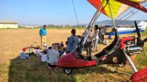 Η περιήγηση συνεχίστηκε στα υπόστεγα των αεροσκαφών όπου οι μικροί μαθητές είχαν την ευκαιρία να δούν απο κοντά τα Αεροσκάφη και να ενημερωθούν για τους τύπους αυτών τις διαφορές μεταξύ τους και τα χαρακτηριστικά τους. Ο Πρόεδρος της Αερολέσχης δεν παρέλειψε να αναφερθεί και στην ιστορία αυτής και στις δράσεις της παλιότερα και σήμερα.