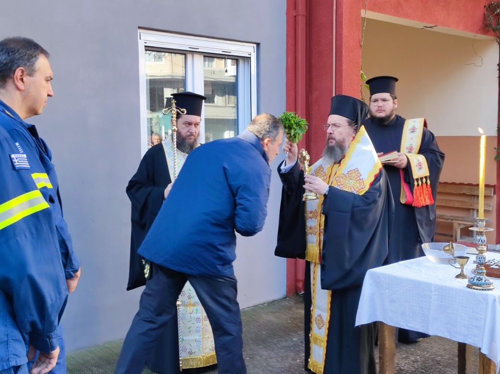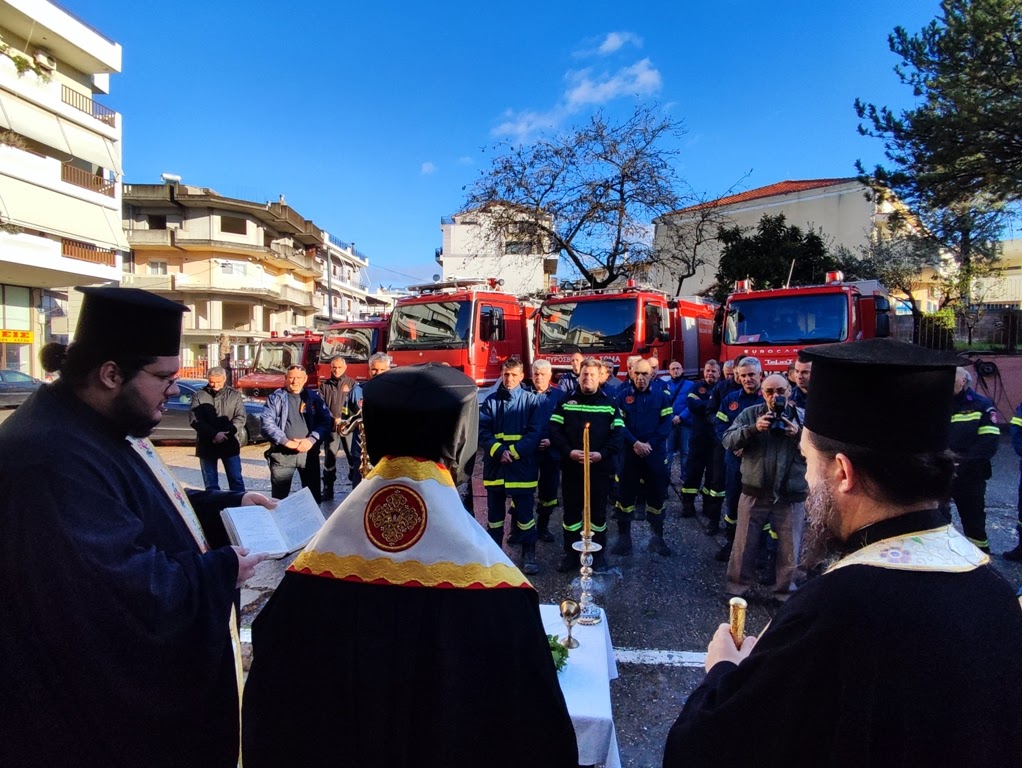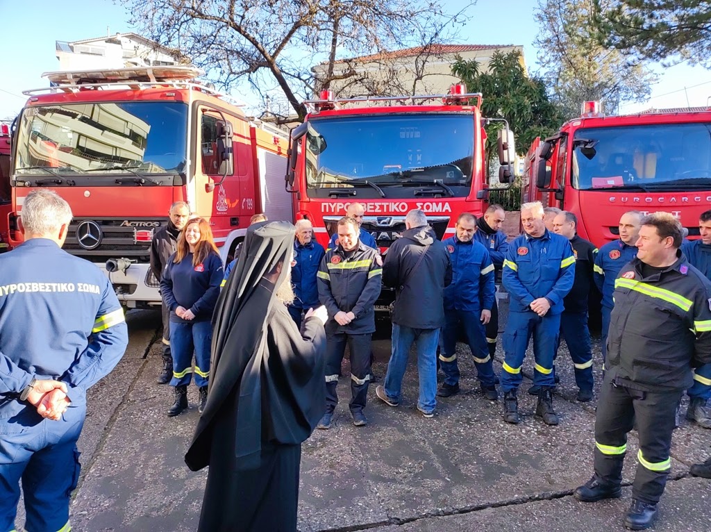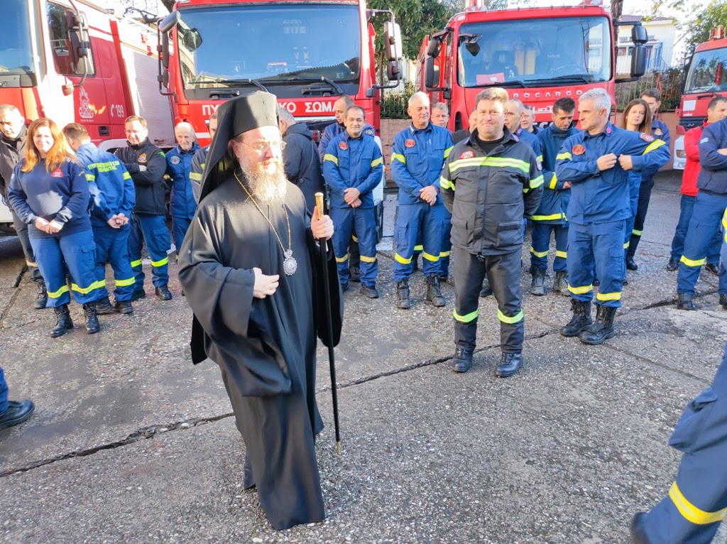 Ο Σεβασμιώτατος αντιπαρέβαλλε την πυρκαγιά που καταστρέφει ανθρώπινες περιουσίες και μπορεί να οδηγήσει τον άνθρωπο στον θάνατο, με την αμαρτία που είναι μια πνευματική πυρκαγιά, που κατατρώγει τον άνθρωπο και μπορεί να τον οδηγήσει στον πνευματικό θάνατο, λέγοντας, ότι εσείς λειτουργείτε πυροσβεστικά σε αυτόν τον κόσμο και εμείς, ως πνευματικοί πατέρες, λειτουργούμε πυροσβεστικά για τις ανθρώπινες ψυχές. Τέλος ευχήθηκε καλή χρονιά με όσο γίνεται λιγότερες πυροσβεστικές επιχειρήσεις και αυτές που θα υπάρξουν να στεφθούν από απόλυτη επιτυχία.