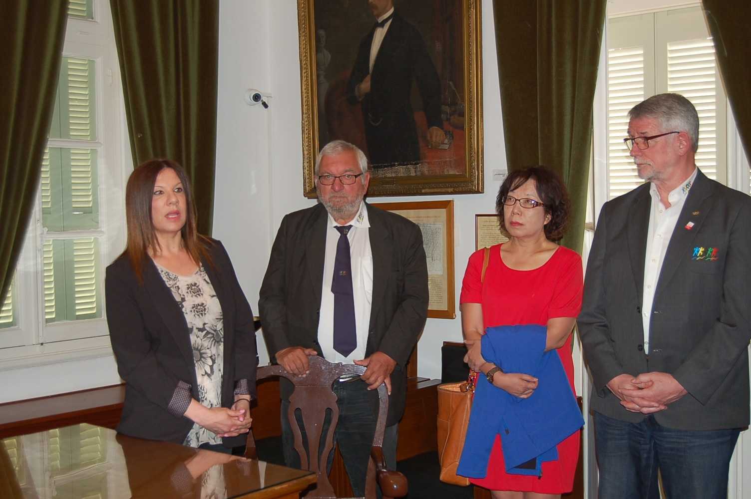 Στην Πινακοθήκη του Δήμου,  τους εκπροσώπους της I.C.G. υποδέχθηκαν η Πρόεδρος της Δημοτικής Κοινότητας Μεσολογγίου Άντζελα Καζαντζή, οι αντιδήμαρχοι Σπ. Καρβέλης και Γ. Καραπαπάς καθώς επίσης ο Πρόεδρος του Πνευματικού Κέντρου Δημ. Μπουσμπουρέλης.