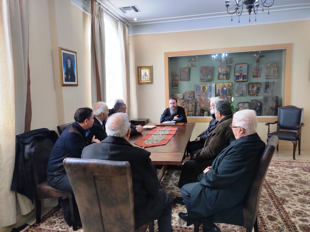 Το Διοικητικό Συμβούλιο του Συνδέσμου Εφέδρων Αξιωματικών Νομού Αιτωλοακαρνανίας δέχθηκε στα Γραφεία της Ιεράς Μητροπόλεως, στην Ιερά Πόλη του Μεσολογγίου, ο Σεβασμιώτατος Μητροπολίτης Αιτωλίας και Ακαρνανίας κ. Δαμασκηνός την Δευτέρα 23 Ιανουαρίου 2023, αποτελούμενο από τον Πρόεδρο κ. Γεώργιο Καλογεράκη, τον Αντιπρόεδρο κ. Φώτιο Σακαρέλλο, τον Γραμματέα κ. Ανδρέα Ζάννο, τον Ταμία κ. Ιωάννη Στεργιάννη, τον Υπεύθυνο Δημοσίων Σχέσεων κ. Χρήστο Καζαντζή και τα Μέλη κ. Θεόδωρο Βλαχόπουλο, κ. Θεόδωρο Μυλωνά και κ. Γεώργιο Νικολάου.