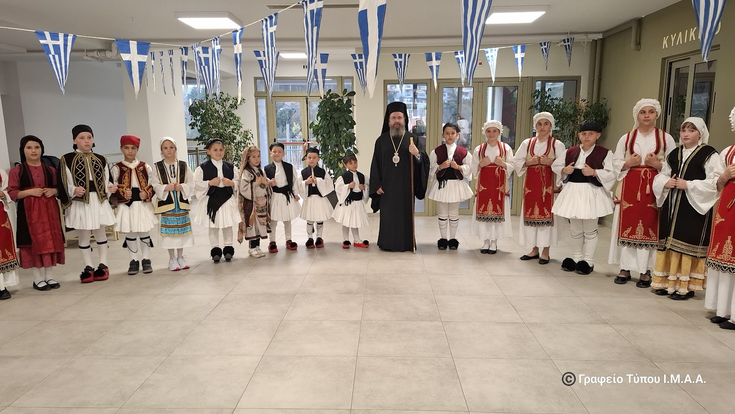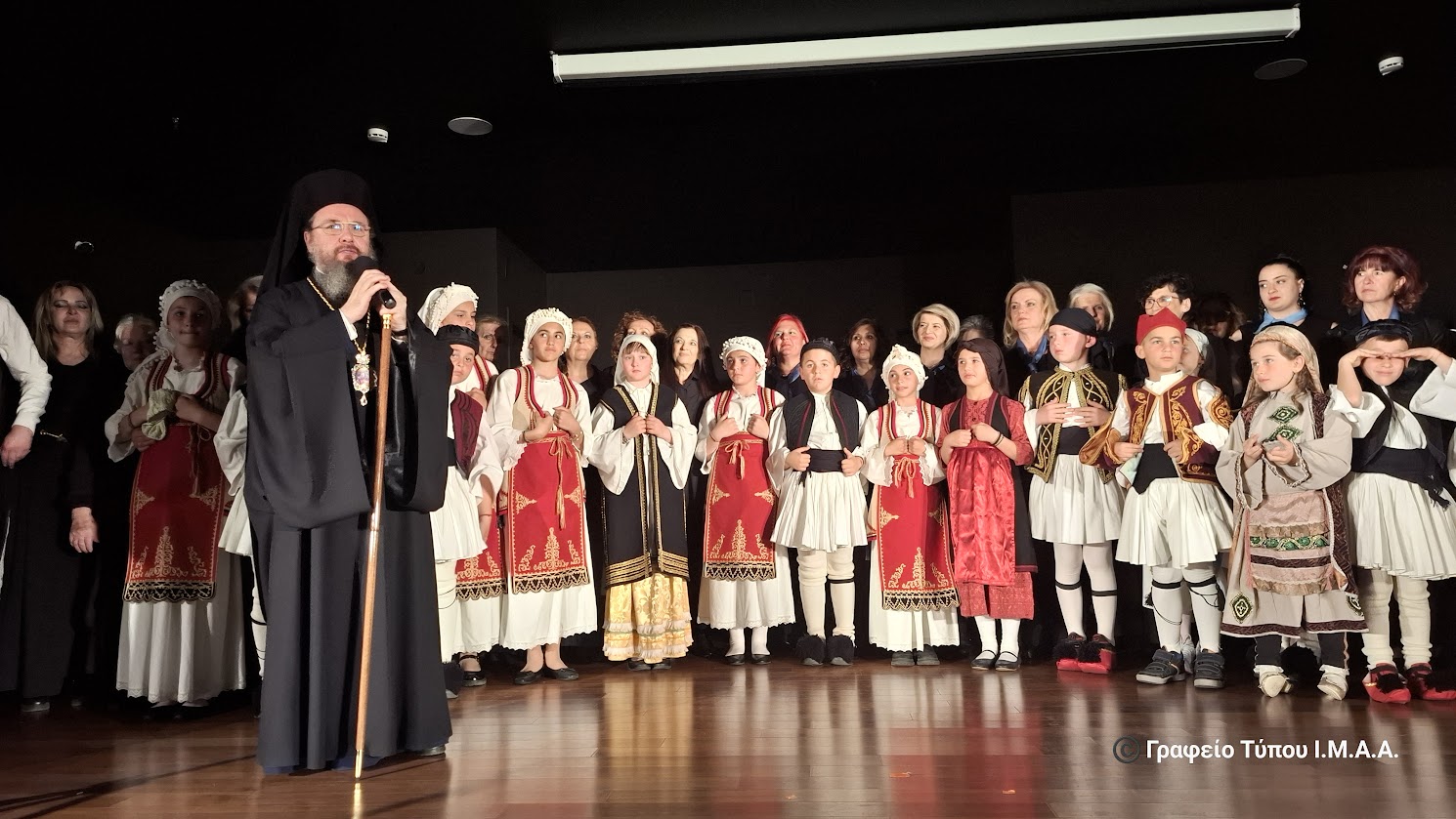 Τα μέλη των τμημάτων θεάτρου, χορωδίας και παραδοσιακών χορών του Ιδρύματος Πολιτισμού «Άγιος Ευγένιος ο Αιτωλός», της Ιεράς Μητροπόλεως Αιτωλίας και Ακαρνανίας, παρουσίασαν ένα πλούσιο εορταστικό πρόγραμμα, με επετειακά τραγούδια από τους Αγώνες της Παλιγγενεσίας του ‘21, θεατρικό έργο αφιερωμένο στην προσφορά των Γυναικών στον Αγώνα και κυρίως σε γυναικείες μορφές που έδρασαν και συμμετείχαν στην Ηρωική Έξοδο του Μεσολογγίου, καθώς και παραδοσιακούς χορούς από το παιδικό τμήμα.
