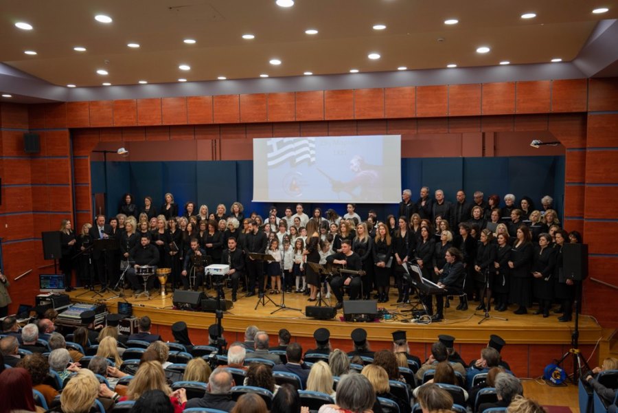 Το κοινό που κατέκλυσε την αίθουσα είχε την ευκαιρία να απολαύσει ένα συγκινητικό μουσικό αφιέρωμα, που ανέδειξε το βάθος και την ψυχή της ελληνικής παράδοσης, με τραγούδια και σκοπούς από την Χορωδία Ενηλίκων του Ιδρύματος Πολιτισμού και από την Νεανική Χορωδία των Ιερών Ναών Αγίου Δημητρίου και Αγίου Νικολάου Καινουργίου, που απέδωσαν, με αρμονία και εκφραστικότητα, έργα εμπνευσμένα από τους αγώνες και τα ιδανικά της πατρίδας.
