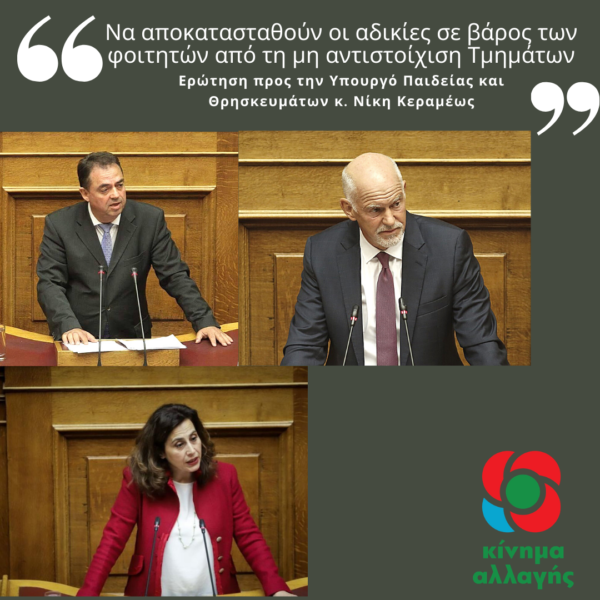 Θέμα: Αδικίες σε βάρος των φοιτητών από τη μη αντιστοίχιση Τμημάτων