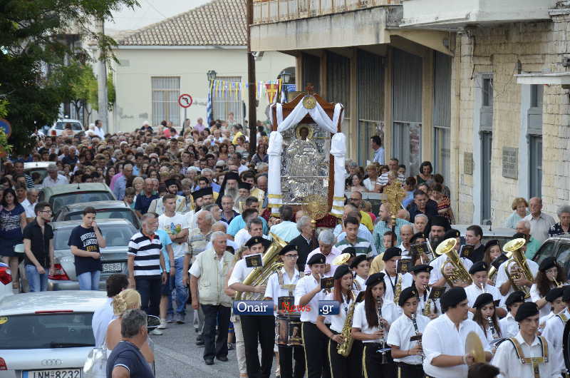 Με τη συνοδεία εμβατηρίων από τη φιλαρμονική του Ιωσήφ των Ρωγών η πομπή ολοκλήρωσε τη λιτάνευση στους δρόμους της πόλης.