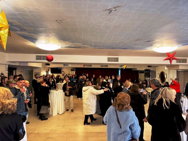 Στη μικρή αυτή γιορτή, που πραγματοποιήθηκε ενόψει των Χριστουγέννων και των γιορτινών ημερών που ακολουθούν, προσφέρθηκαν γλυκά, κεράσματα, χυμοί και αναψυκτικά, ενώ τη συνάντηση πλαισίωσαν και μουσικές νότες από σαξοφωνίστα, προσδίδοντας έναν διακριτικό εορταστικό τόνο.