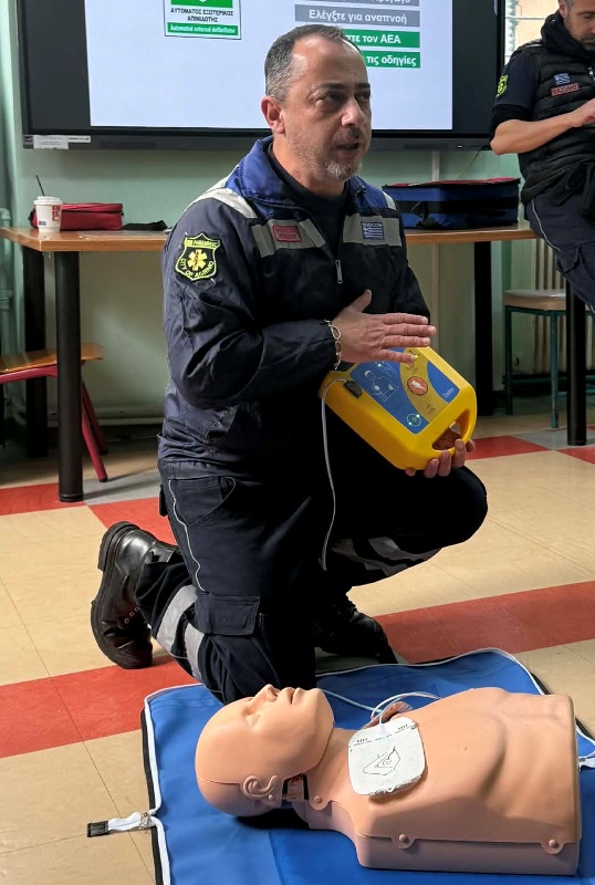 Εκ μέρους των μαθητών και του προσωπικού του σχολείου, θα ήθελα να εκφράσω τις θερμότερες ευχαριστίες όλων, προς τη Διοίκηση και το προσωπικό του ΕΚΑΒ, για την άμεση ανταπόκριση στο αίτημά μας για επιμόρφωση του προσωπικού του σχολείου μας σε θέματα πρώτων βοηθειών – ΚΑΡΠΑ και χρήση Αυτόματου Απινιδωτή.