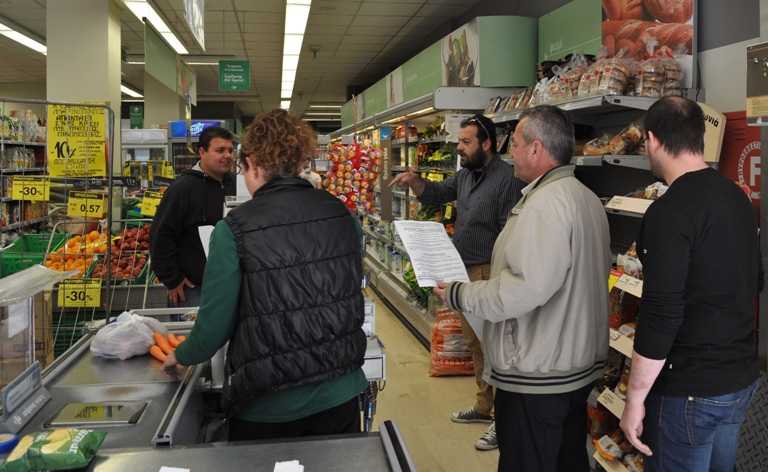 “Το σωματείο ιδιωτικών υπαλλήλων πραγματοποίησε σήμερα Κυριακή (3/5/2015) μαχητική παρέμβαση – εξόρμηση ενημέρωσης στους εργαζόμενους, σε μια σειρά μονοπωλιακούς ομίλους- μεγάλες αλυσίδες επιχειρήσεις της πόλης του Αγρινίου, που για άλλη μια Κυριακή είναι ανοιχτά.