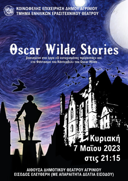 «ΖΩΕΣ ΓΙΑ ΦΑΓΩΜΑ» του Σάκη Σερέφα την Παρασκευή 5 Μαΐου 2023 στις 21:15 στην αίθουσα του Δημοτικού Θεάτρου Αγρινίου και «OSCARWILDESTORIES» την Κυριακή 7 Μαΐου 2023στις 21:15 στην αίθουσα του Δημοτικού Θεάτρου Αγρινίου.