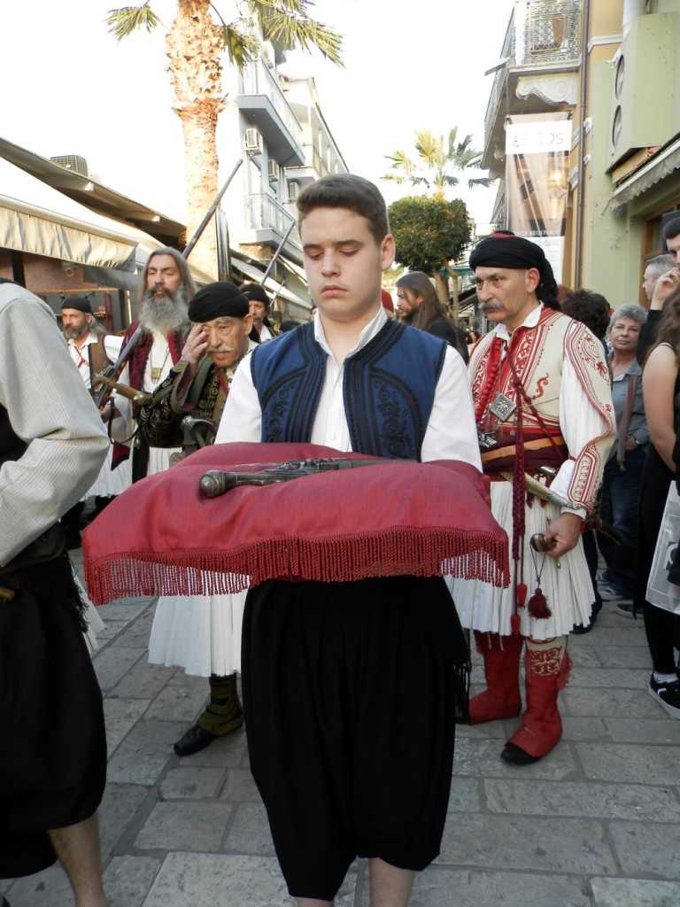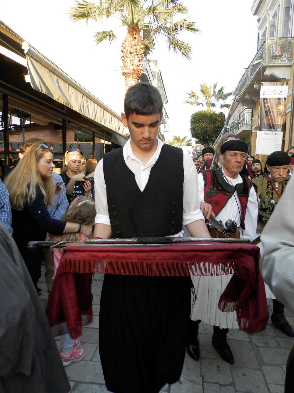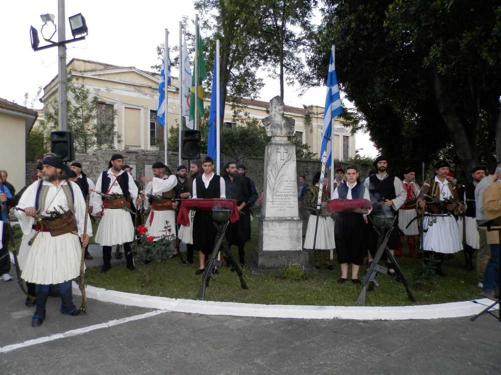 Ακολούθησε η παράδοση των όπλων του Αρχηγού της Φρουράς από το δημιουργό του Ιστορικού Μουσείου Νίκο Κορδόση, με την πομπή -συνοδεία της Φιλαρμονικής «Διονύσιος Σολωμός» και πλήθους κόσμου, να κατευθύνεται προς τον Κήπο των Ηρώων. Μετά την επιμνημόσυνη δέηση, έγινε ανάγνωση των βραβευμένων μελετών, χαιρετισμός από τον πρόεδρο του Συλλόγου Φίλων της Μουσικής «Διονύσιος Σολωμός» ενώ η τελετή ολοκληρώθηκε με κατάθεση στεφάνων και απόδοση τιμών στο μνημείο του Αθανασίου Ραζη-Κότσικα.