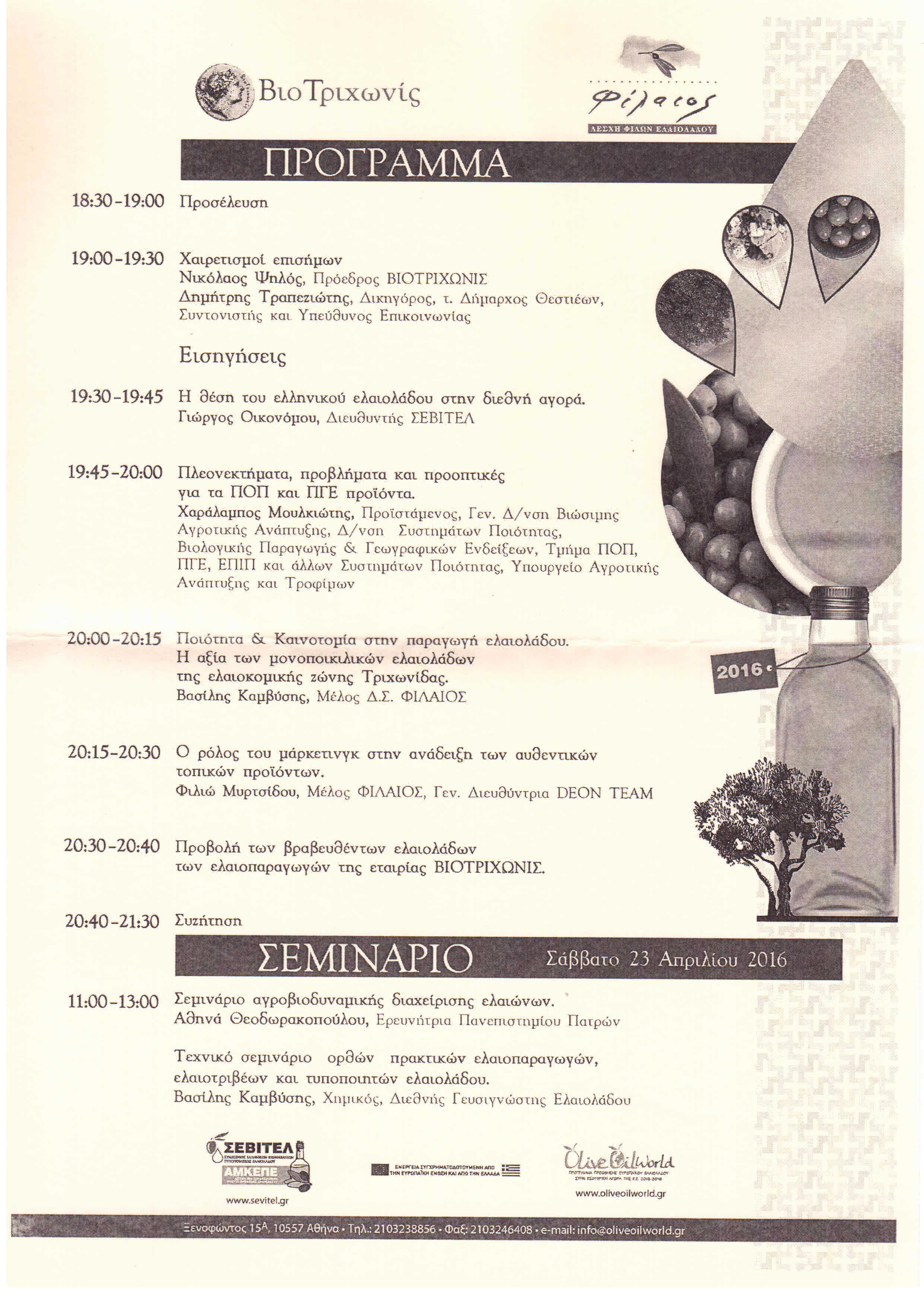 Η Βιοκαλλιεργητική Περιβαλλοντική Εταιρεία “Βιοτριχωνίς” και η Λέσχη Φίλων Ελαιολάδου “Φίλαιος” διεξάγουν ομιλία με θέμα: “Ο ελαιοκομικός τομέας βασικός μοχλός στην ανάπτυξη της τοπικής κοινωνίας.