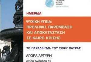 Ο Σύλλογος για την Ψυχική Υγεία – ΣΟΨΥ Πάτρας σε συνεργασία με την Περιφέρεια Δυτικής Ελλάδας σας προσκαλούν στην ημερίδα με θέμα: «Ψυχική Υγεία: Πρόληψη, Παρέμβαση και Αποκατάσταση σε καιρό κρίσης. Το Παράδειγμα του ΣΟΨΥ Πάτρας» που θα πραγματοποιηθεί στις 8 Απριλίου 2017 στην “Αγορά Αργύρη” στην Πάτρα από τις 09.00 έως τις 17.00