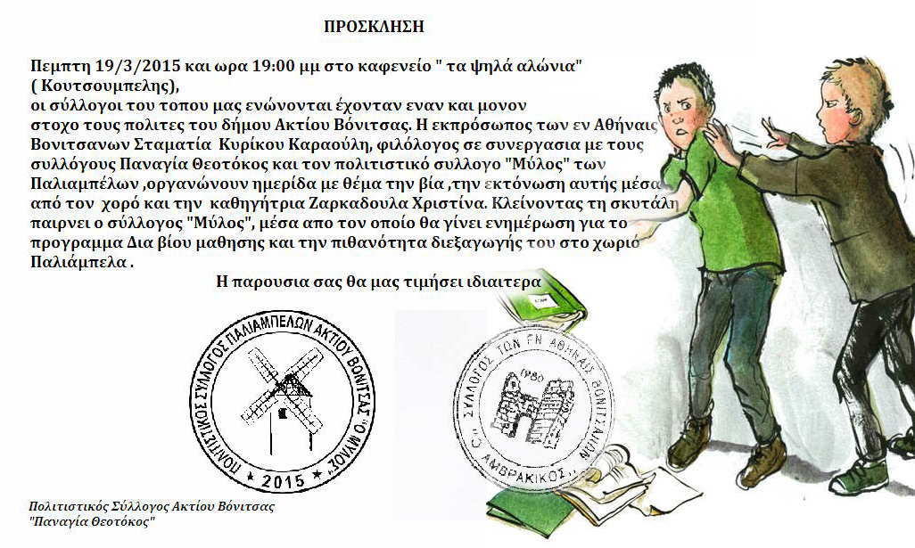 Αύριο Πέμπτη, 19/03/20015 και ώρα 7.00μμ, θα πραγματοποιηθεί εκδήλωση στο καφενείο “Τα ψηλά αλώνια” στα Παλιάμπελα, που θα περιλαμβάνει τις εξής ενότητες: