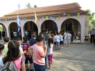 Από νωρίς το πρωί λεοφωρεία, ναυλωμένα από την Αρχιερατική Περιφέρεια Μακρυνείας, με τη σεπτή ευλογία και άδεια του Σεβασμιωτατου Μητροπολίτου μας Αιτωλίας και Ακαρνανίας κκ ΚΟΣΜΆ, μετέφεραν για εκκλησιασμό σχεδόν όλα τα παιδιά των Δημοτικών σχολείων της Αρχιερατικής Περιφέρειας Μακρυνείας και συγκεκριμένα άνω των 350 παιδιών εκκλησιάστηκαν στο παραλίμνιο εκκλησάκι όπου μετά το πέρας της Θείας Λειτουργίας προσφέρθηκαν σε όλα τα παιδιά από μια εικόνα της Αναλήψεως του Κυρίου μας, αλλά και κεράσματα ( χυμός και κρουασάν προσφορά των super market MARKET IN τους οποίους και ευχαριστούμε προσωπικά, αρτοκλασία και γλυκό ) προκειμένου να αναχωρήσουν για τη συνέχιση των μαθημάτων τους.