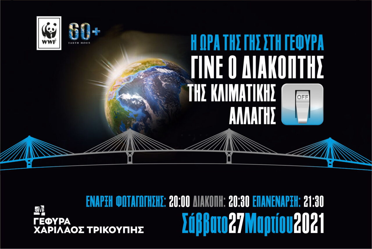 Η Γέφυρα Ρίου Αντιρρίου «Χαρίλαος Τρικούπης» συντονίζεται για μία ακόμη χρονιά με άλλα μνημεία και τοπόσημα του κόσμου για την καθιερωμένη εθελούσια συσκότιση 60 λεπτών, στο πλαίσιο της ετήσιας παγκόσμιας συμμετοχικής εκστρατείας της WWF για την «ΩΡΑ ΤΗΣ ΓΗΣ».