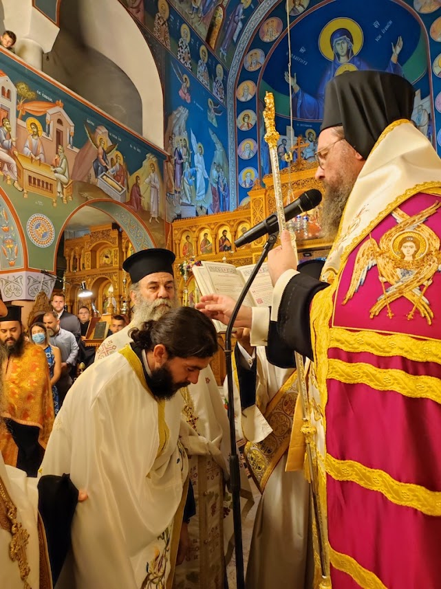 Κατά τη διάρκεια της ακολουθίας χειροθέτησε Πνευματικό τον Εφημέριο του Ναού, Αρχιμ. Γαβριήλ Κοκκώνη. Κατά τις παραινέσεις του στον π. Γαβριήλ και στους Ενορίτες, που συμμετείχαν στην Ιερά Ακολουθία αναφέρθηκε στο γεγονός της Μεταμορφώσεως του Χριστού, τονίζοντας πως ό,τι συμβαίνει κατά φύσιν στον Χριστό μπορεί να το βιώσει κατά χάριν ο άνθρωπος, ο οποίος έχει την προοπτική της αιωνιότητας.