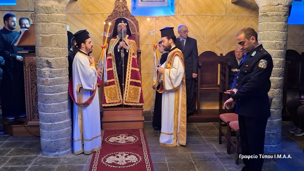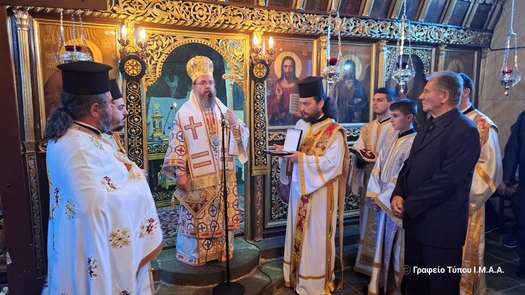 Πριν την απόλυση του Εσπερινού απένειμε το οφφίκιο του Πρωτοπρεσβυτέρου στον π. Συμεών Κιτσινέλη, Προϊστάμενο της Ενορίας.