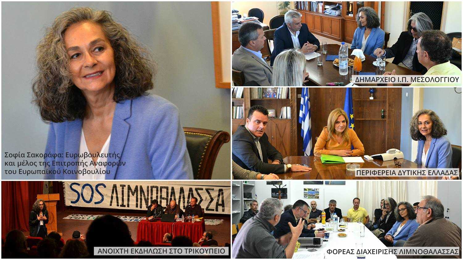 Στο Μεσολόγγι βρέθηκε το διήμερο 2 και 3 Νοέμβρη η ανεξάρτητη ευρωβουλευτής κ. Σοφία Σακοράφα, ανταποκρινόμενη στην πρόσκληση που απηύθυνε η πρωτοβουλία πολιτών «Λιμνοθάλλαζα» προς όλους τους Έλληνες ευρωβουλευτές, μέλη της επιτροπής αναφορών της Ευρωπαϊκής Ένωσης, με βασικό θέμα την ενημέρωσή τους σχετικά με την κατασκευή τεσσάρων μονάδων καύσης βιορευστών για την παραγωγή ηλεκτρικής ενέργειας μέσα στο Εθνικό Πάρκο της Λιμνοθάλασσας του Μεσολογγίου.