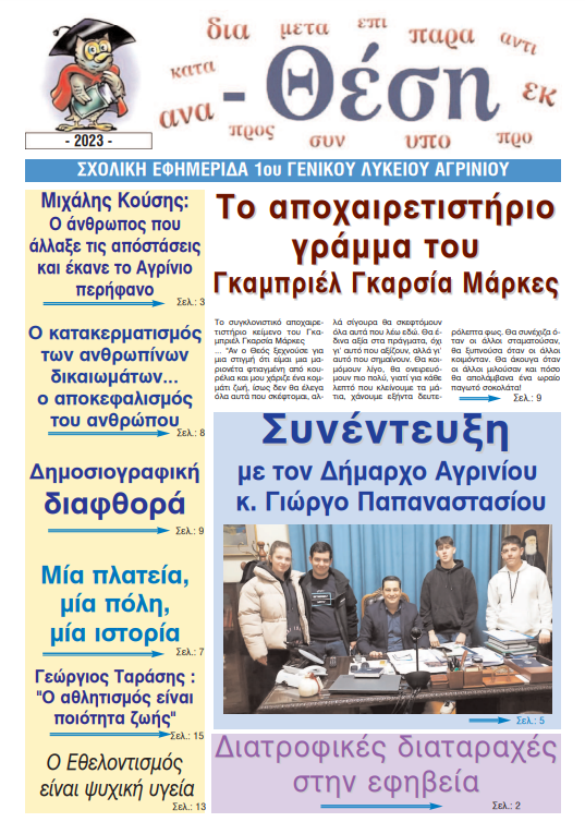 Η Εφημερίδα “ΘΕΣΗ” του 1ου Γενικού Λυκείου Αγρινίου με όλα της τα θέματα