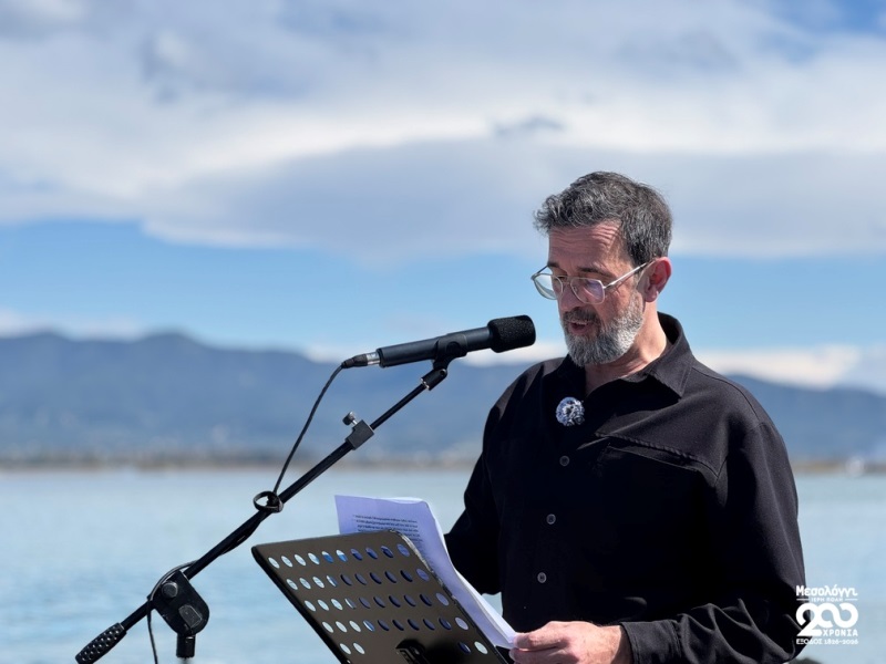 Ιδιαίτερα καθηλωτική ήταν η αφήγηση της μάχης από τον καταξιωμένο ηθοποιό Λεωνίδα Κακούρη, ο οποίος με ένταση και εκφραστικότητα μετέφερε το κοινό στα δραματικά γεγονότα της 25ης Μαρτίου 1826, αναδεικνύοντας το μέγεθος της θυσίας και της ανδρείας των υπερασπιστών του νησιδίου.
