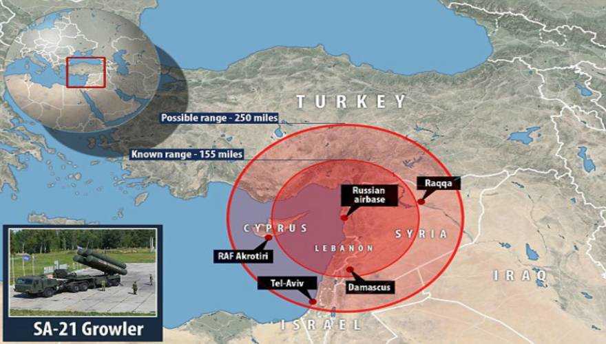Οι S-400 Triumf έχουν στοχοποιήσει ολόκληρη την νοτιοανατολική Τουρκία αλλά και τη βάση της RAF στο Ακρωτήρι Κύπρου καθώς διαθέτουν εμβέλεια 400 χλμ και μπορούν να καταρρίψουν μαχητικά σε ύψος 90.000 ποδιών.