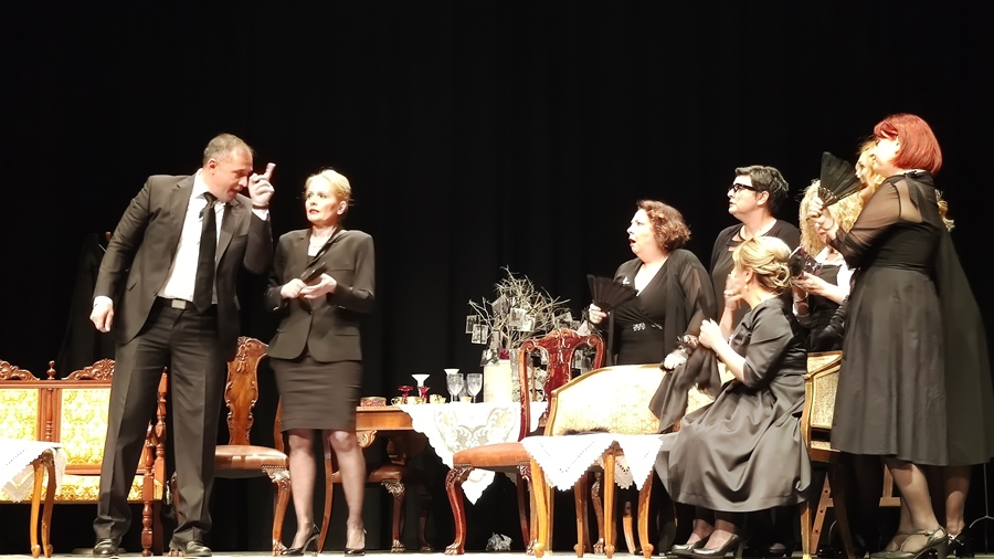 ΣΗΜΕΙΩΜΑ ΣΚΗΝΟΘΕΤΗ: Με αφορμή μια κηδεία και μέσα από την υπερβολή και το χιούμορ μπαίνει στο στόχαστρο ο καθωσπρεπισμός και ο μικροαστισμός. Μέσα από το μαύρο χιούμορ ο θεατής μπορεί να αντιληφθεί το άδειο πρόσωπο του μικροαστού που ζει μέσα στην ανασφάλεια, το άγχος και τις ασφυκτικές οικογενειακές και κοινωνικές σχέσεις.