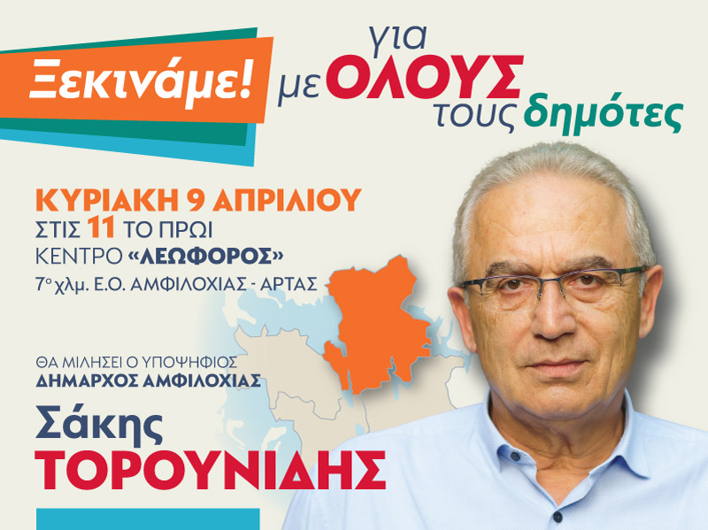 Ο υποψήφιος δήμαρχος Αμφιλοχίας και επικεφαλής του Συνδυασμού «Δήμος για Όλους» Σάκης Τορουνίδης προέβη στην παρακάτω δήλωση: