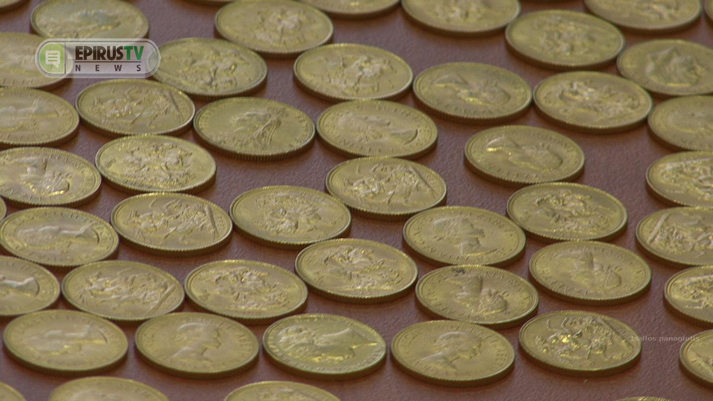 • τέσσερα χρυσά νομίσματα και ένα χρυσό μενταγιόν