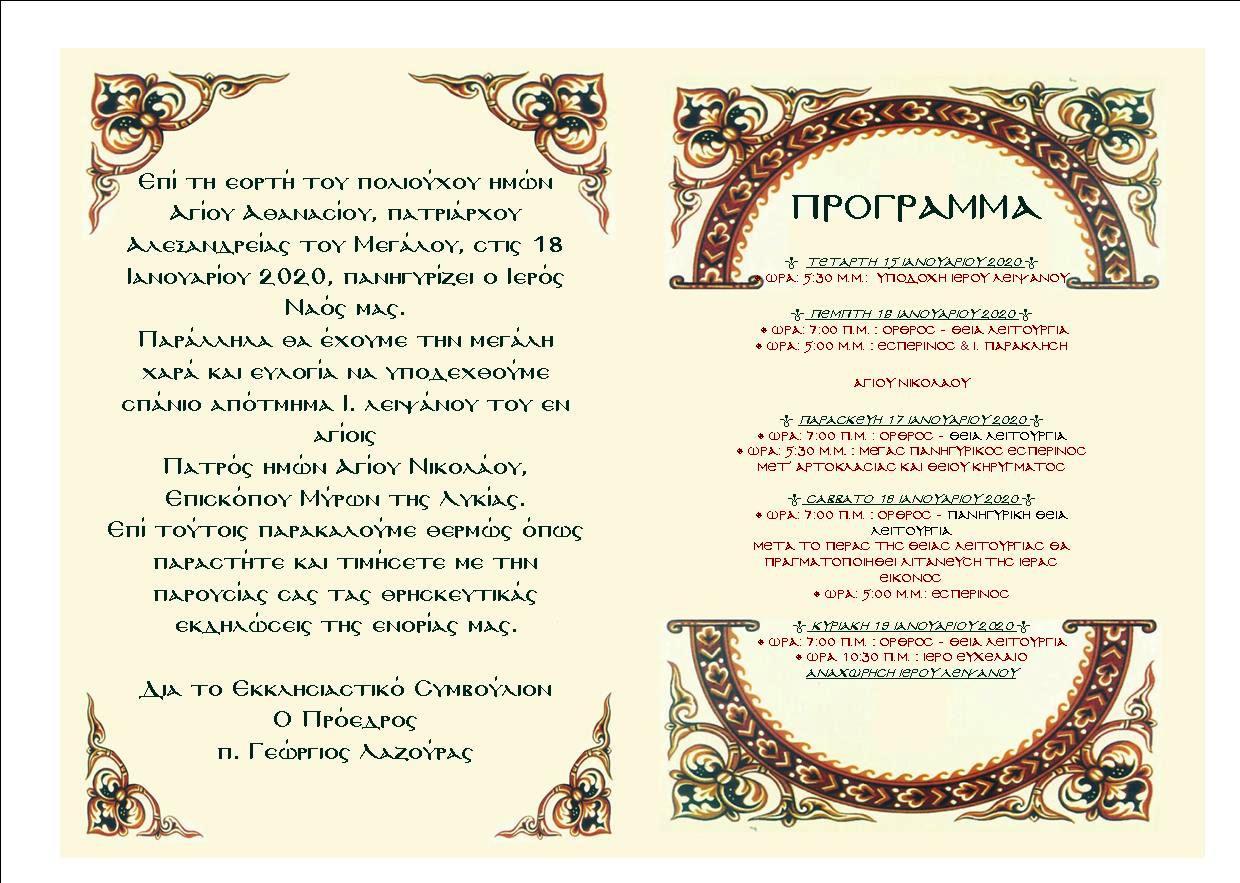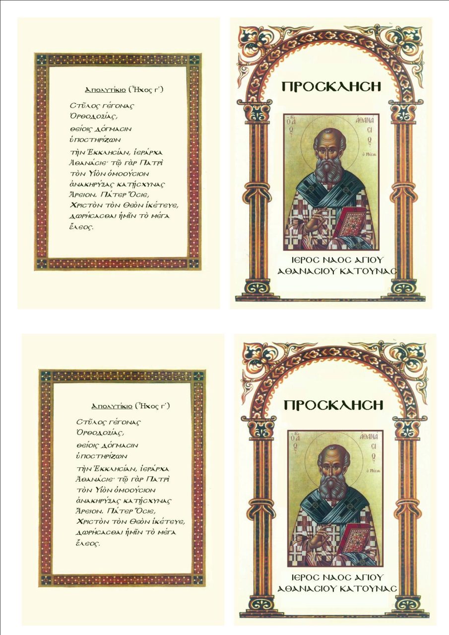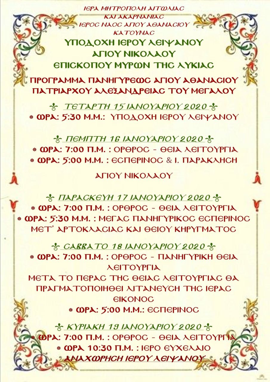 Δείτε αναλυτικά το πρόγραμμα εκδηλώσεων εορτασμού Αγίου Αθανασίου Κατούνας: