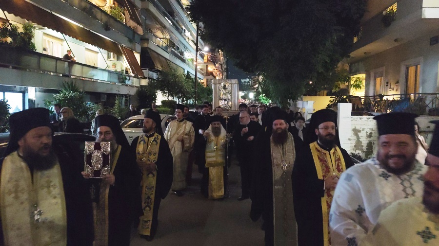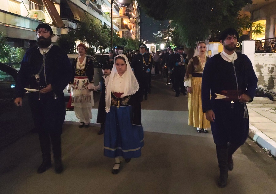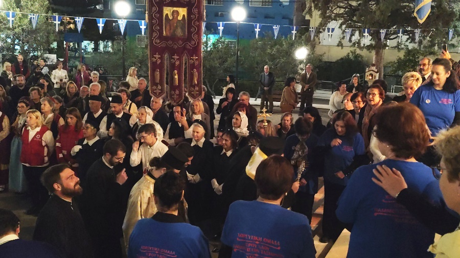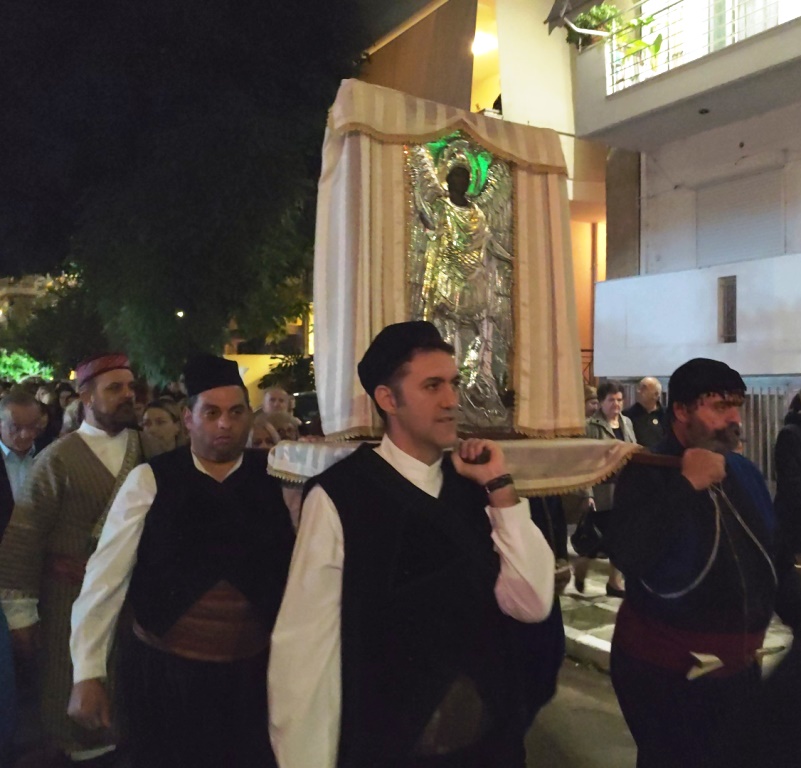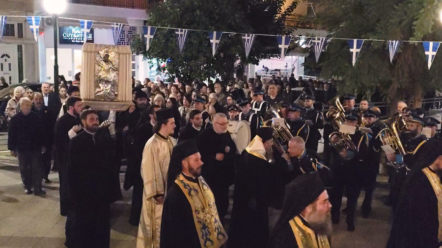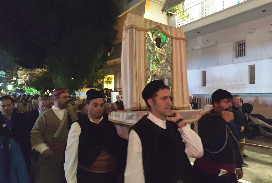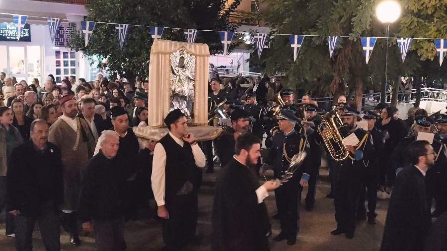 Στην συνέχεια ακολούθησε λιτάνευση της ιεράς εικόνας σε δρόμους της πόλης παιανίζοντας η φιλαρμονική .