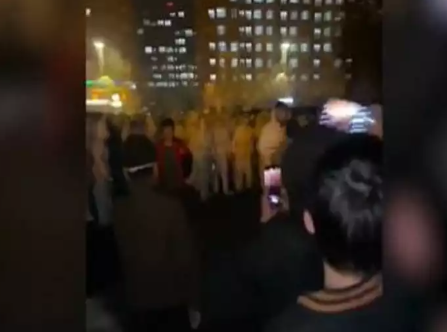 Τα πλάνα δείχνουν πλήθος εργαζόμενων να διαδηλώνει σε δρόμο και ορισμένους από αυτούς να έρχονται αντιμέτωποι με ανθρώπους της ασφάλειας που φορούν ολόσωμες λευκές προστατευτικές στολές και άλλους αστυνομικούς με εξαρτύσεις μονάδων αντιμετώπισης ταραχών.