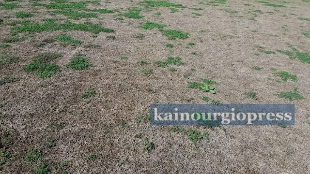 Μόλις την προηγούμενη εβδομάδα ο χλοοτάπητας ήταν σε άριστη κατάσταση ,όμως οι σημερινές εικόνες είναι αποκαρδιωτικές και προκαλούν στεναχώρια.