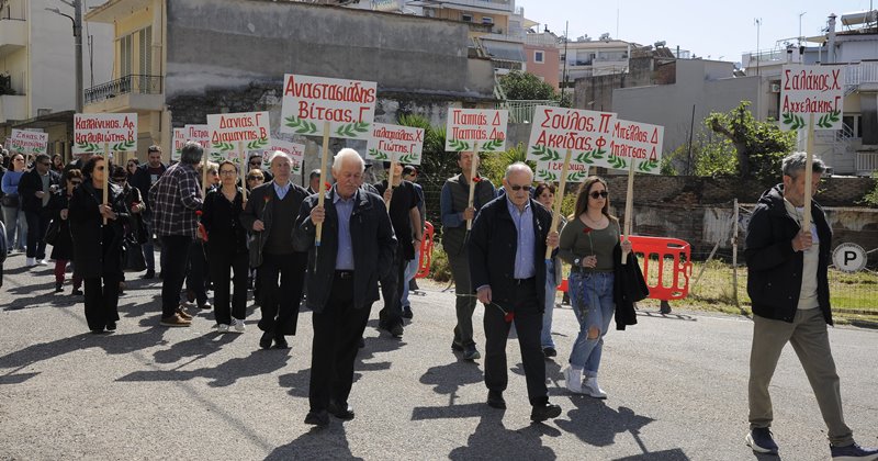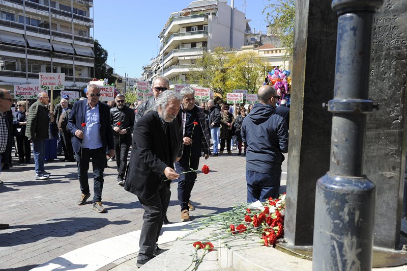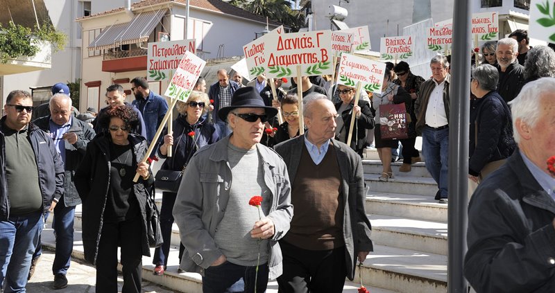 Ακολούθησε πορεία στους δρόμους της πόλης ως την κεντρική πλατεία, στο μνημείο των τριών απαγχωνισμένων, των δυο ΕΠΟΝιτων Πάνου Σούλου και Χρήστου Σαλάκου, καθώς και του Αβραάμ Αναστασιάδη.