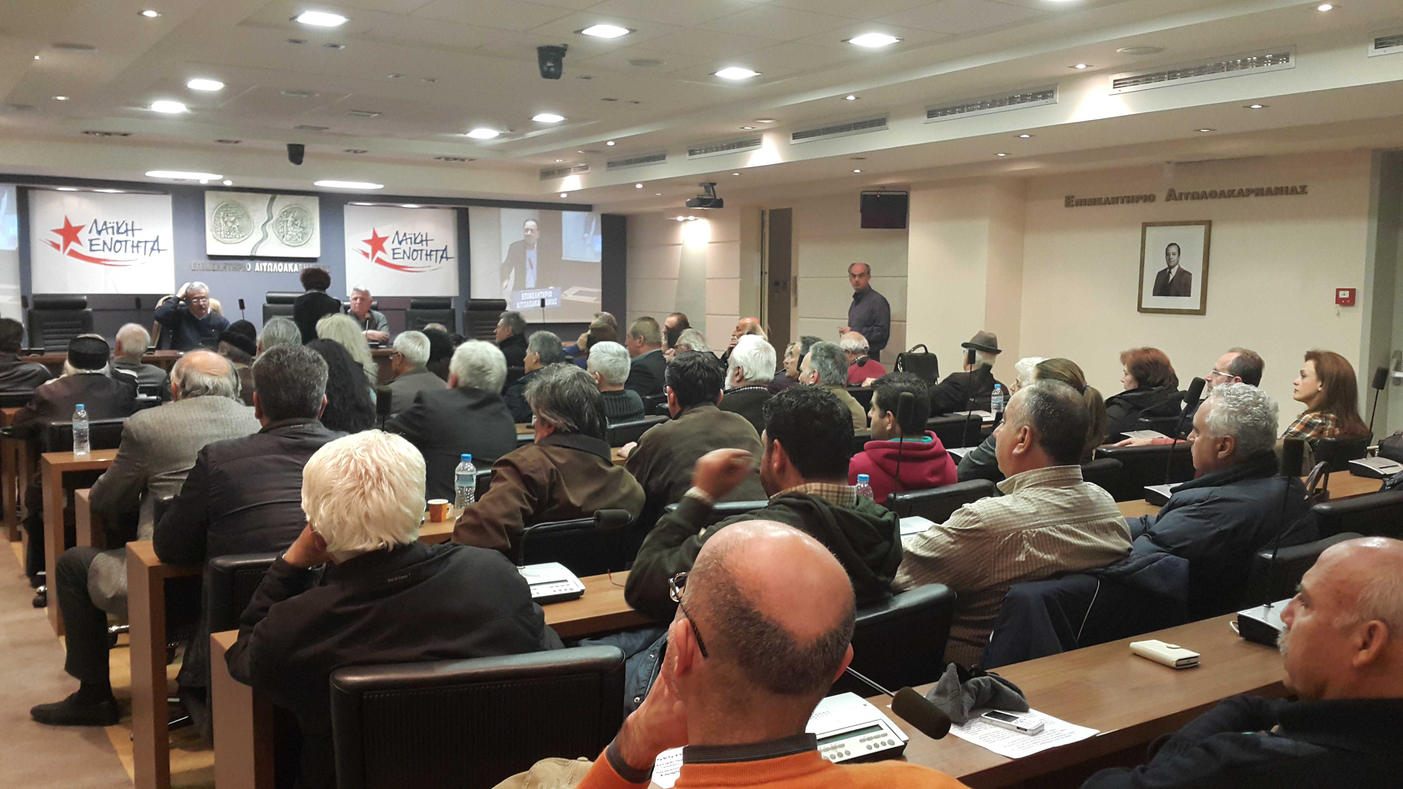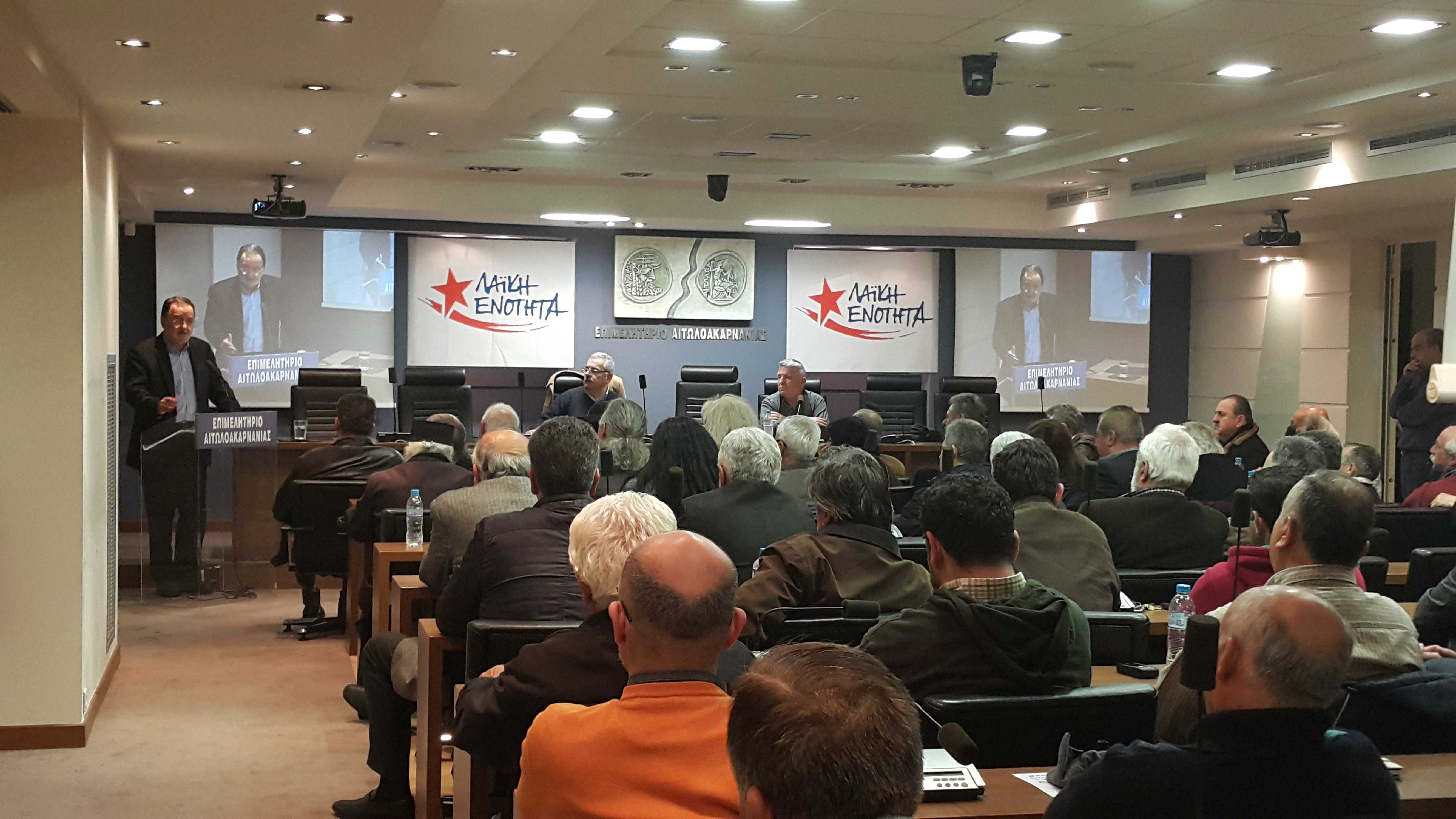 Ολοκληρώθηκε και η κεντρική ομιλία του προέδρου της Λαϊκής Ενότητας κ.Παναγιώτη Λαφαζάνη στο Επιμελητήριο Αιτωλοακαρνανίας.