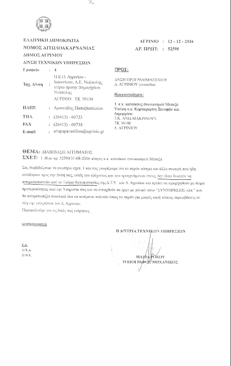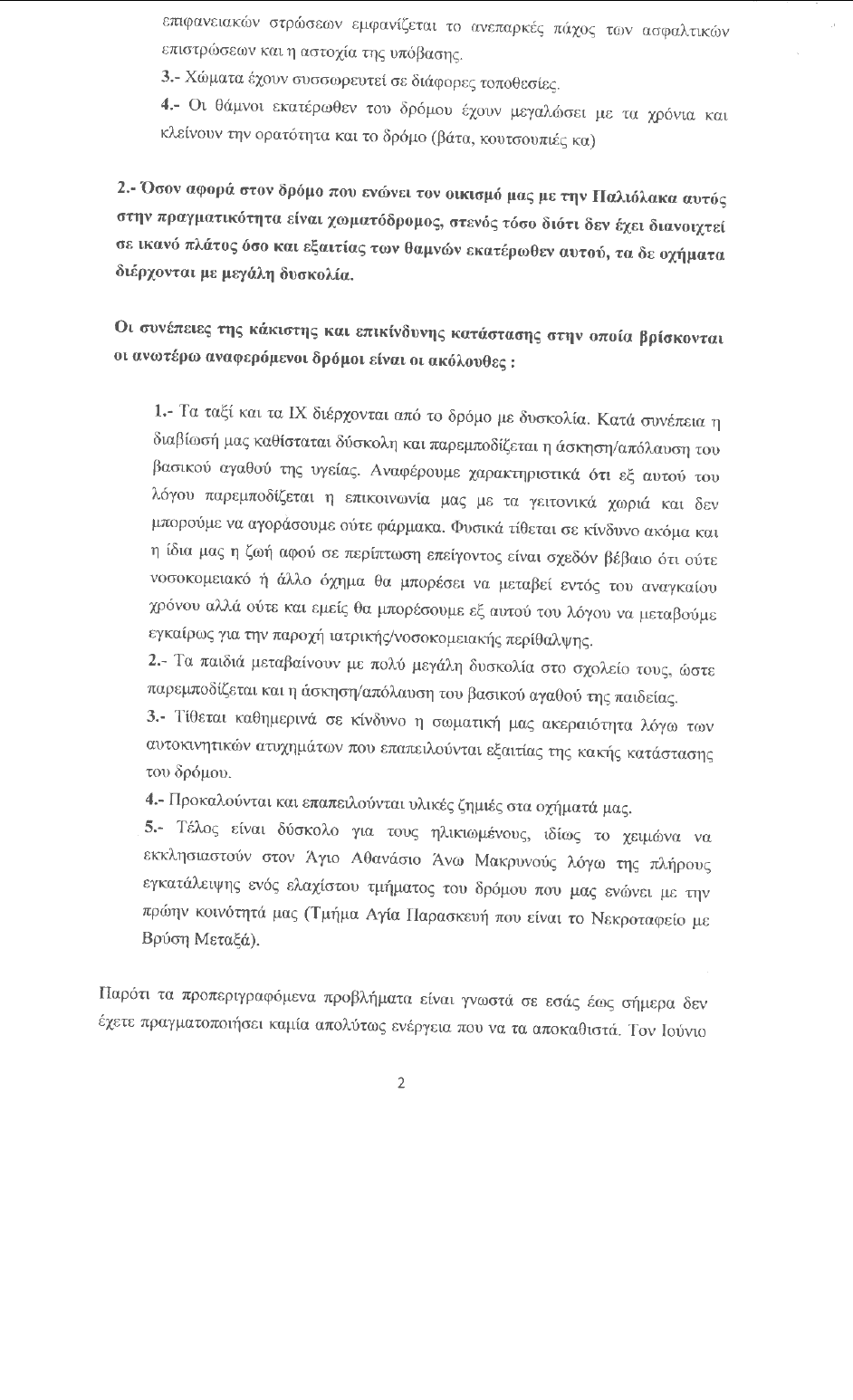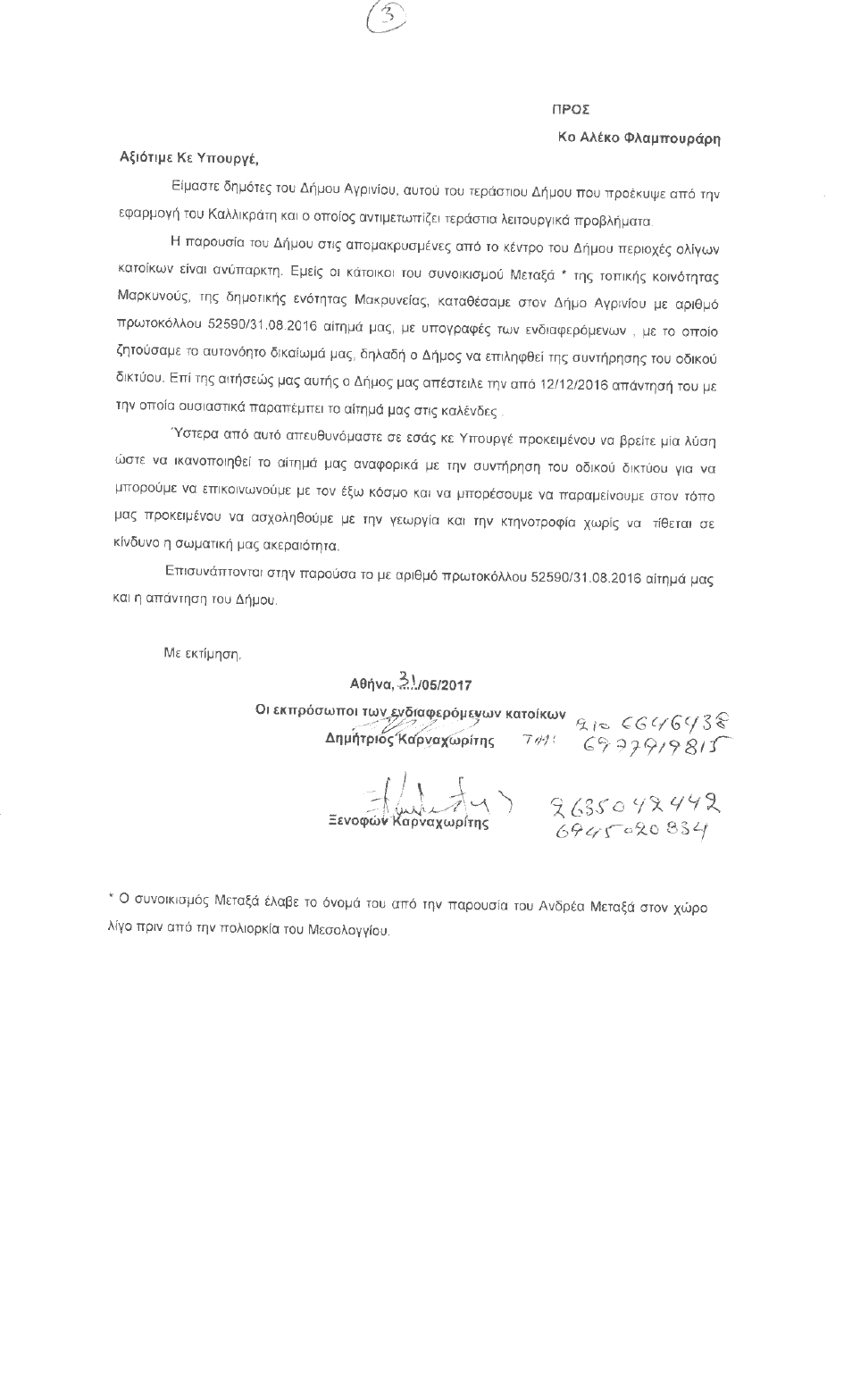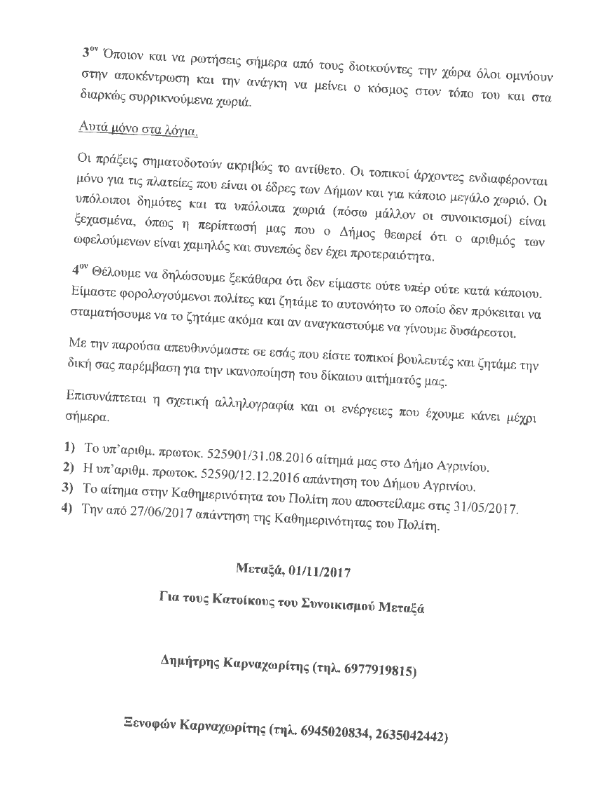 Ακολουθεί αναλυτικά η αναφορά των κατοίκων που κατέθεσαν οι βουλευτές του ΚΚΕ Νίκος Μωραΐτης και Νίκος Καραθανασόπουλος προς τον υπουργό Εσωτερικών.