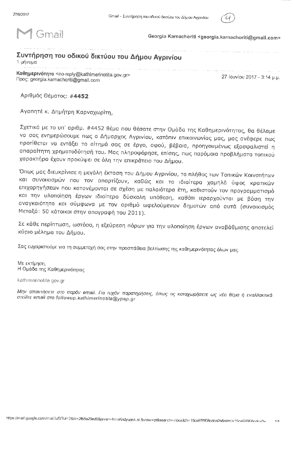 Το ΚΚΕ κατέθεσε ΑΝΑΦΟΡΑ την επιστολή των κατοίκων του συνοικισμού Μεταξά της τοπικής κοινότητας Μακρυνούς της Δημοτικής Ενότητας Μακρυνείας του Δήμου Αγρινίου που ζητούν να ικανοποιήσει το αίτημά τους για συντήρηση του τοπικού οδικού δικτύου.