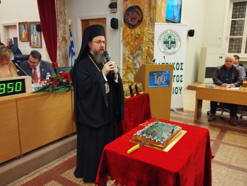 Κατά την σύντομη προσφώνησή του εξέφρασε τη χαρά του για την παρουσία του ανάμεσα στους Ιατρούς της πόλης, τονίζοντας, ότι την φετινή χρονιά συμπληρώνονται 100 χρόνια από την ίδρυση του Συλλόγου, τον οποίο διαχρονικά υπηρέτησαν μεγάλες ιατρικές προσωπικότητες που έθεσαν γερά θεμέλια πάνω στα οποία συνεχίζουν οι νεώτεροι. Ευχήθηκε σε όλους, με τη δύναμη της ιατρικής επιστήμης και της πίστης στον Θεό να αντιμετωπίζουν τις σωματικές και πνευματικές ασθένειες, αφού ο άνθρωπος είναι ενιαία ψυχοσωματική οντότητα και τόνισε, ότι και η Εκκλησία, που είναι ένα πνευματικό θεραπευτήριο και η ιατρική επιστήμη διακονούν, προασπίζουν και προστατεύουν το αγαθό της ζωής που είναι το μέγιστο δώρο του Θεού προς τον άνθρωπο.