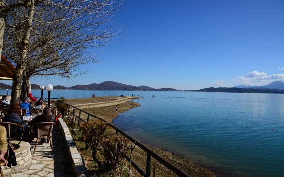 Αφετηρία της δικής μου εξερεύνησης ο οικισμός Καλύβια Φυλακτής. Χτισμένος στην πλαγιά του βουνού, βλέπει στη λίμνη και στις αλπικές βουνοκορφές των Αγράφων, ενώ διαθέτει αξιόλογες επιλογές διαμονής. Πρώτη μου στάση, στο βόρειο τμήμα της λίμνης, η γραφική Κερασιά, ένα χωριό ιδανικό για μοναχικούς περιπάτους στη φύση με πανοραμική θέα προς το Μουζάκι, τον Θεσσαλικό κάμπο και τα Μετέωρα. Περιδιαβαίνοντας στα σοκάκια, κάνω μια στάση στο παραδοσιακό καφενείο-παντοπωλείο «Η Χρυσή Καρδιά», που λειτουργεί από το 1945. Η διακόσμησή του παραπέμπει σε εικόνες της Ελλάδας του 1950. Η πραγματική καρδιά, όμως, αυτού του καφενείου είναι ο φιλόξενος κύριος Παντελής, που με τις ιστορίες του θα ταξιδέψει κι εσάς, σαν μηχανή του χρόνου, στο ένδοξο παρελθόν του χωριού.